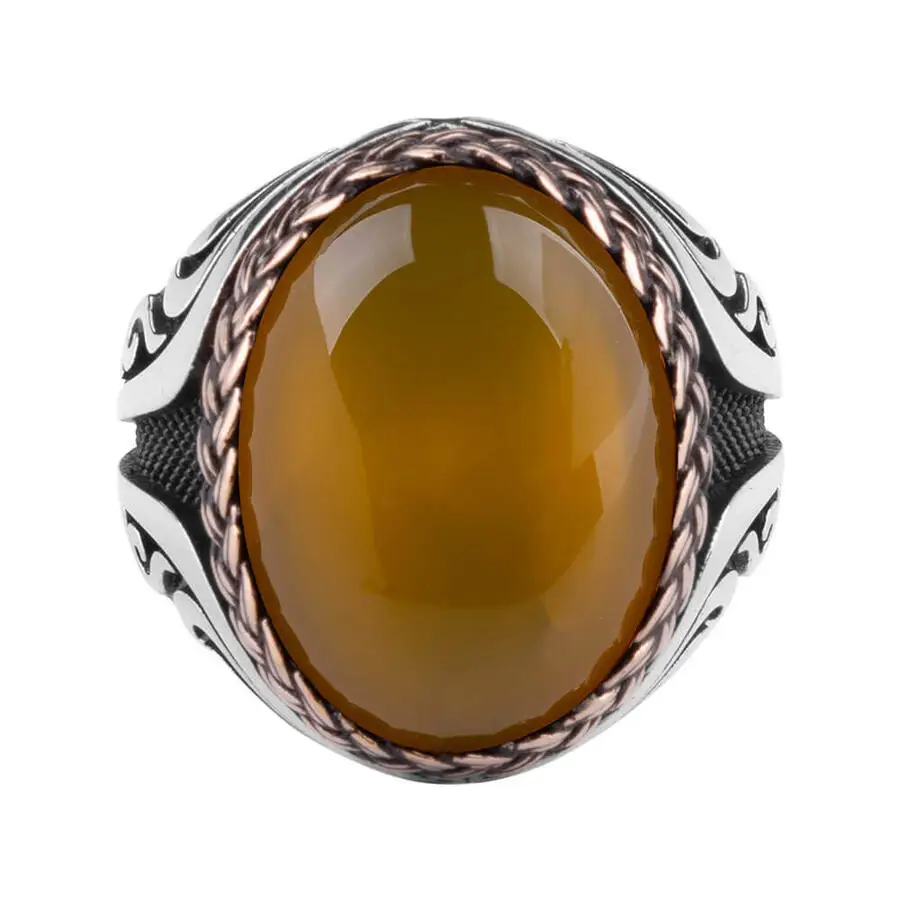 Винтажное овальное мужское серебряное кольцо с агатом и большим тяж...