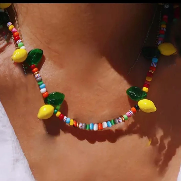 Женское Ожерелье в богемном стиле, Пляжное ожерелье желтого цвета с бусинами и лимонами в стиле бохо для девушек, разноцветный бисер, Прямая поставка