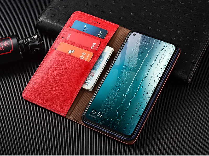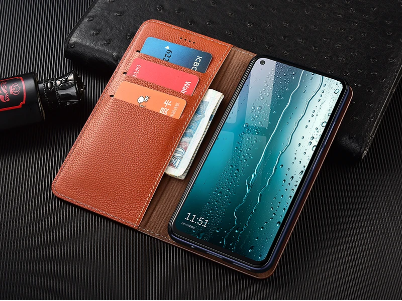 Чехол-книжка из натуральной кожи с зернистой текстурой личи для тел...
