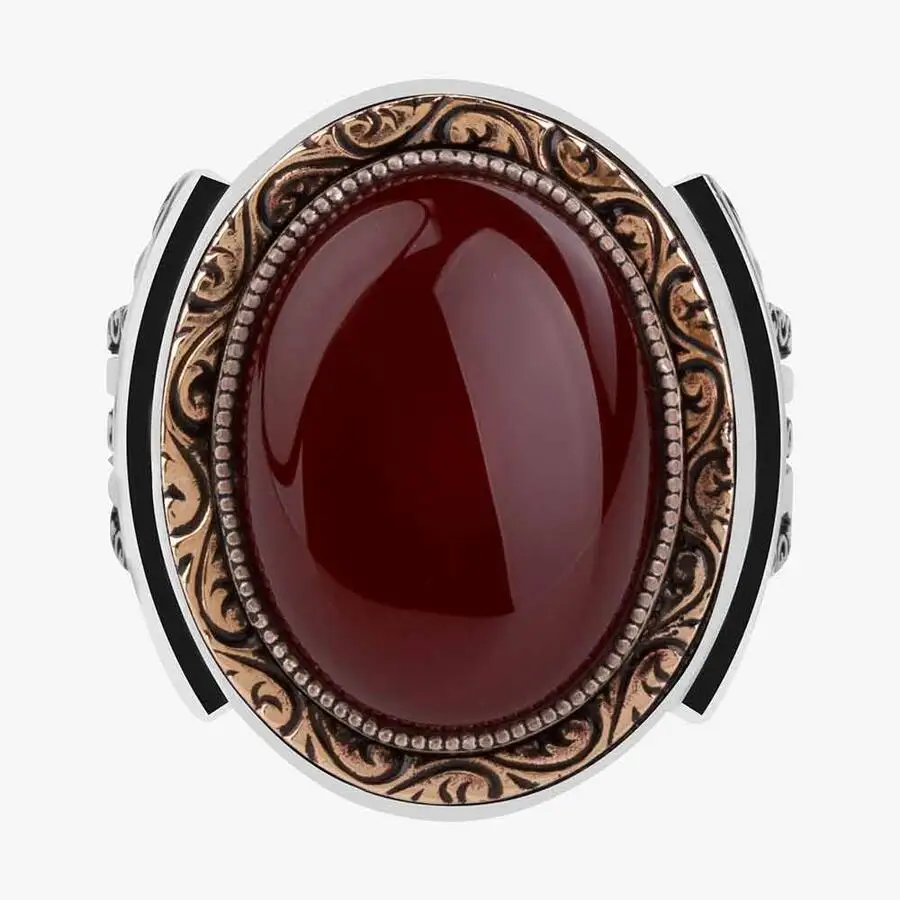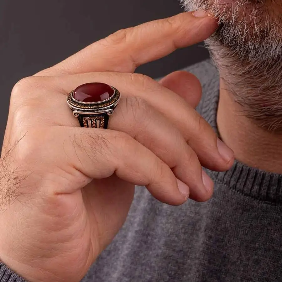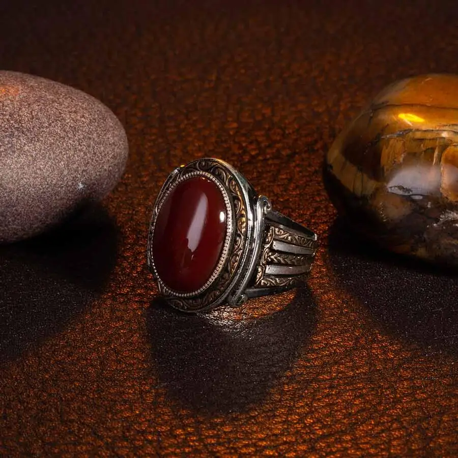 Овальный Красный Большой Agate мужское кольцо с камнем винтажное му...