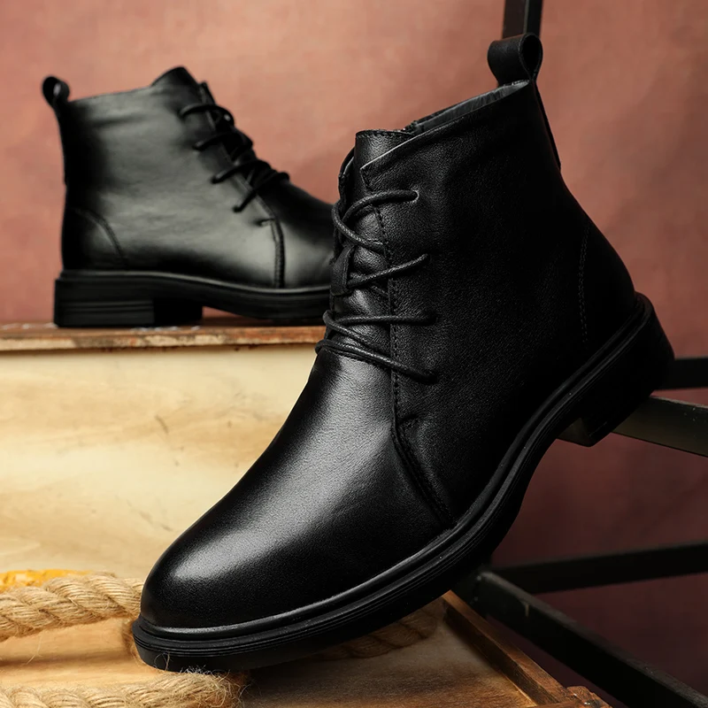 Мужские полусапоги из натуральной коровьей кожи; Мужские ботинки из хлопка зимние теплые короткие плюшевые ботинки на снежную погоду; botos; Удобная шнуровка, прочная, долговечная подошва мужская обувь