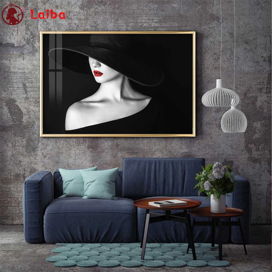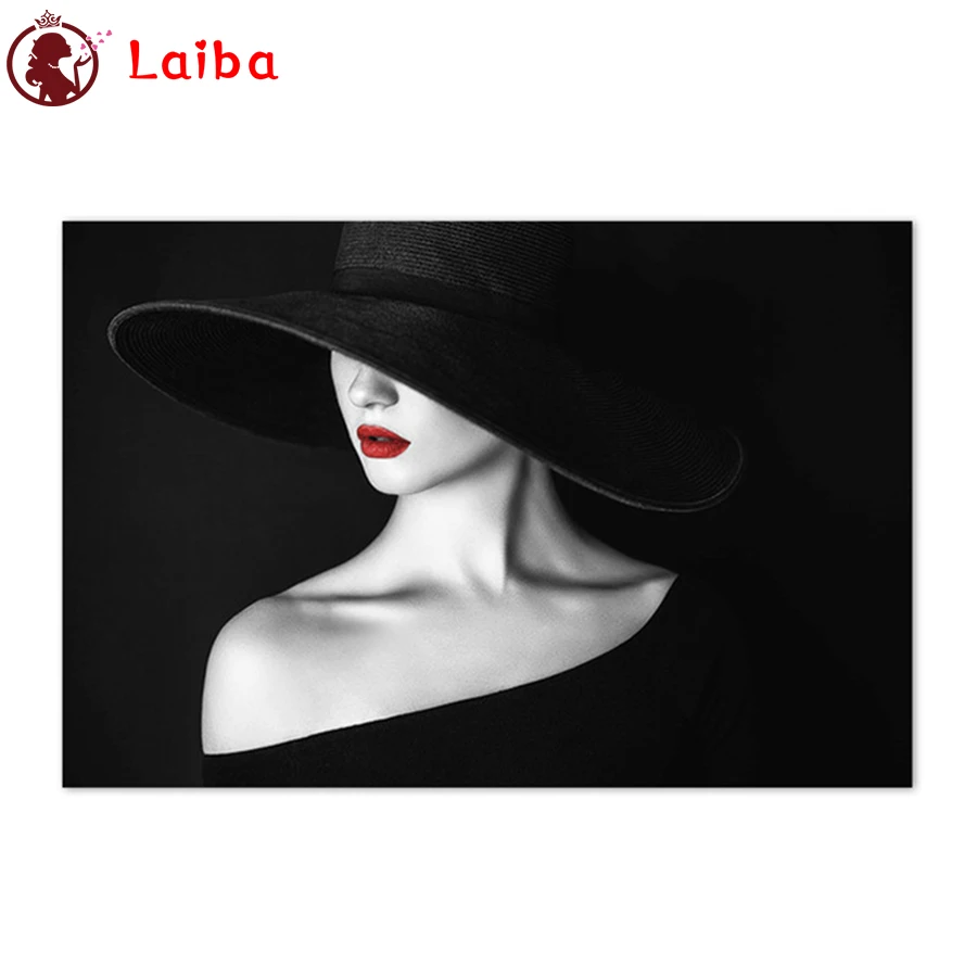 Алмазная вышивка сделай сам, круглая квадратная вышивка, современное искусство, сексуальные красные губы, женщина с шапкой, наборы для вышивки крестиком, алмазная живопись 5d