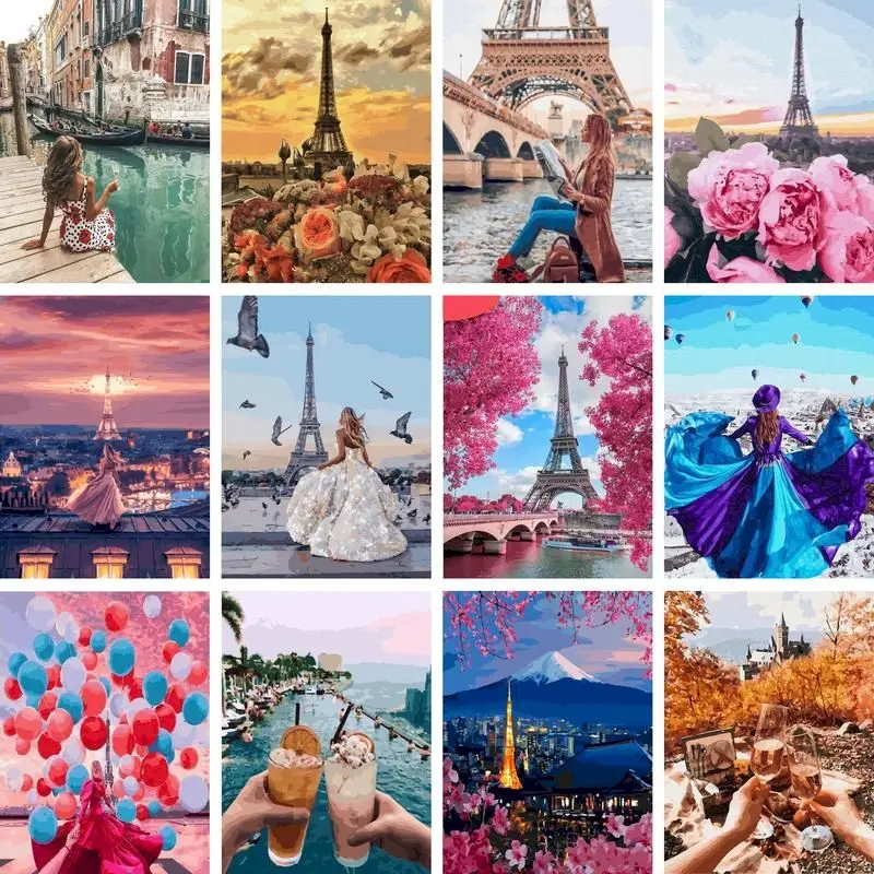 Gatyztory рамка уличный живописный DIY Рисование по номерам абстрак...