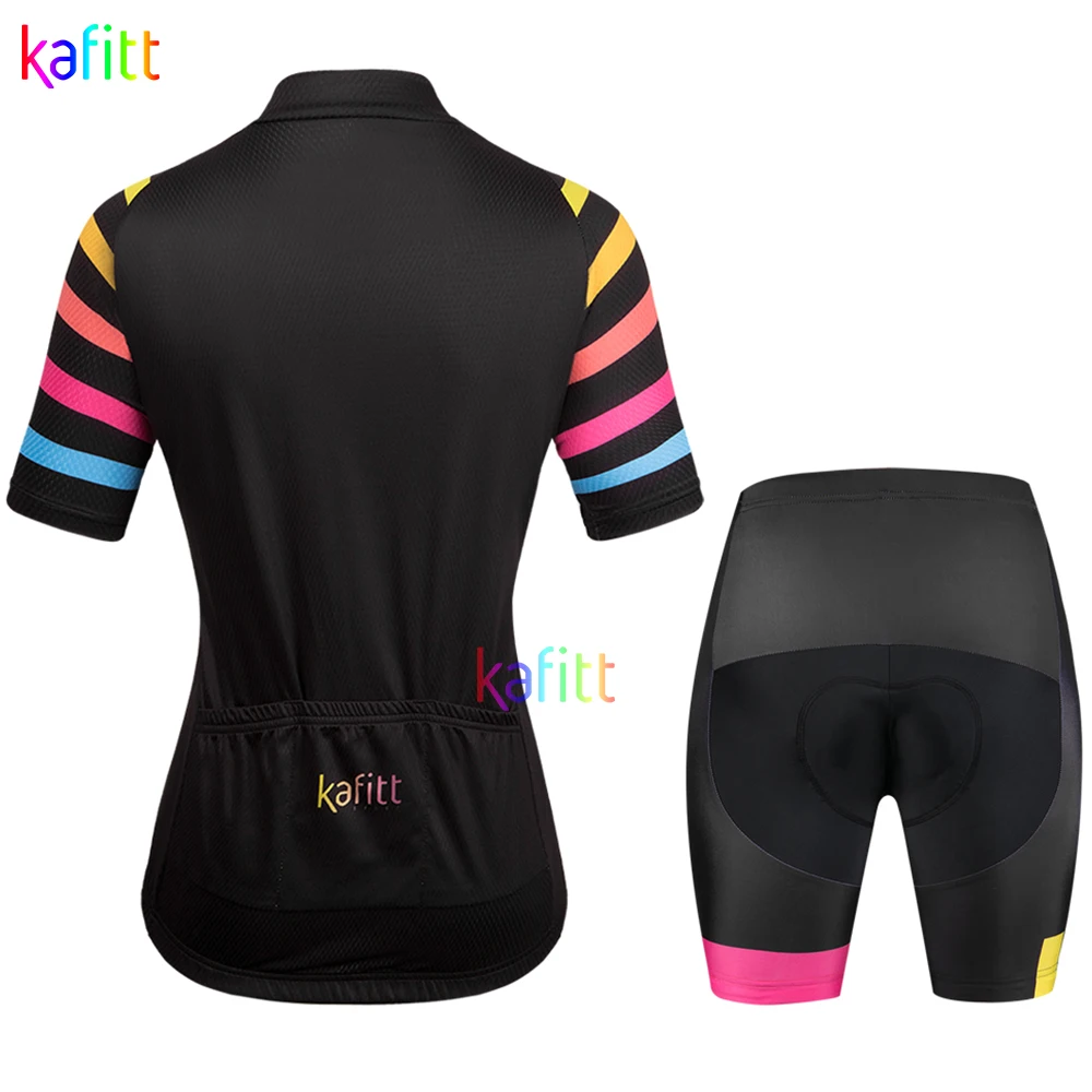 Женский черный трикотажный комплект cafitt с коротким рукавом для езды на велосипеде, комбинезоны, дышащие штаны для активного отдыха, для команды Go Pro, быстросохнущие, женская летняя одежда