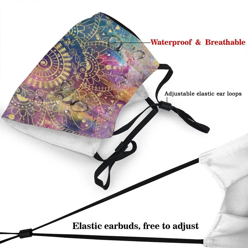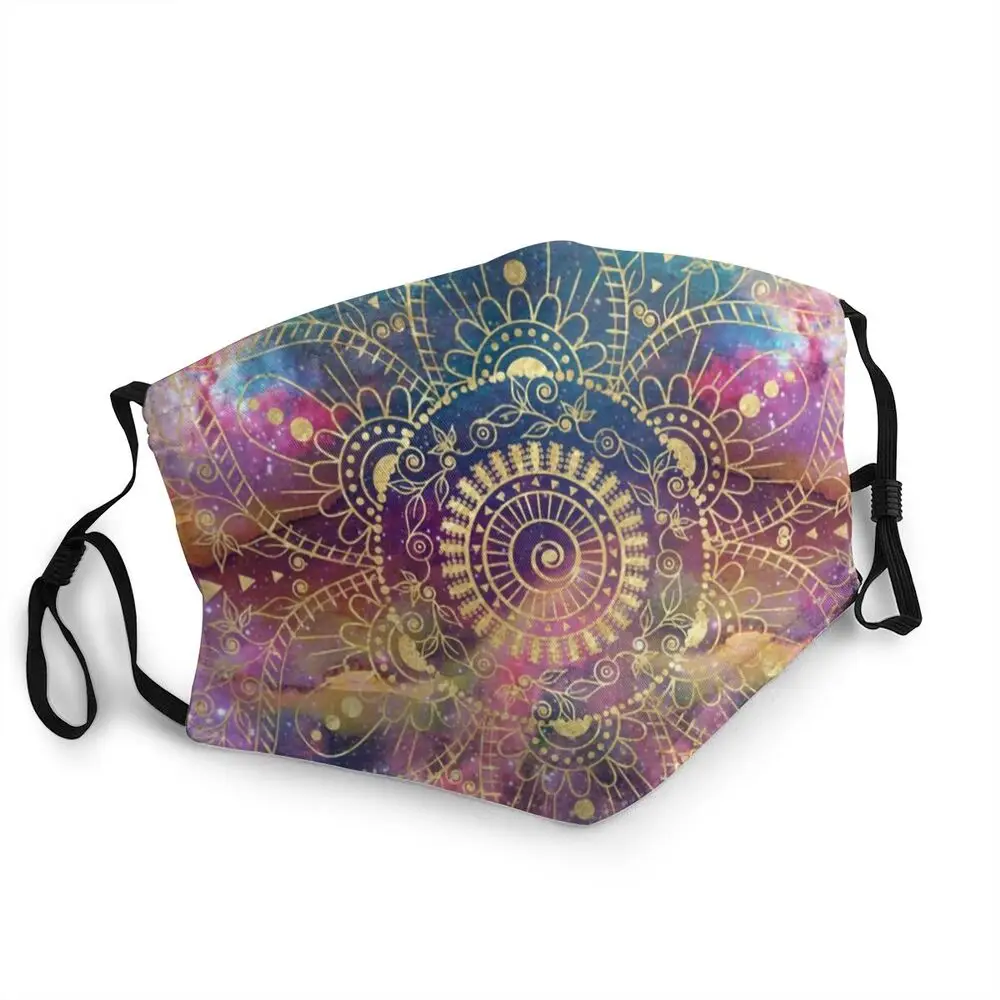 Золото акварелью и Туманность Мандала многоразовые унисекс маска для лица для взрослых с геометрическим рисунком Буддизм чехол с изображением цветка респиратор рот муфельная печь