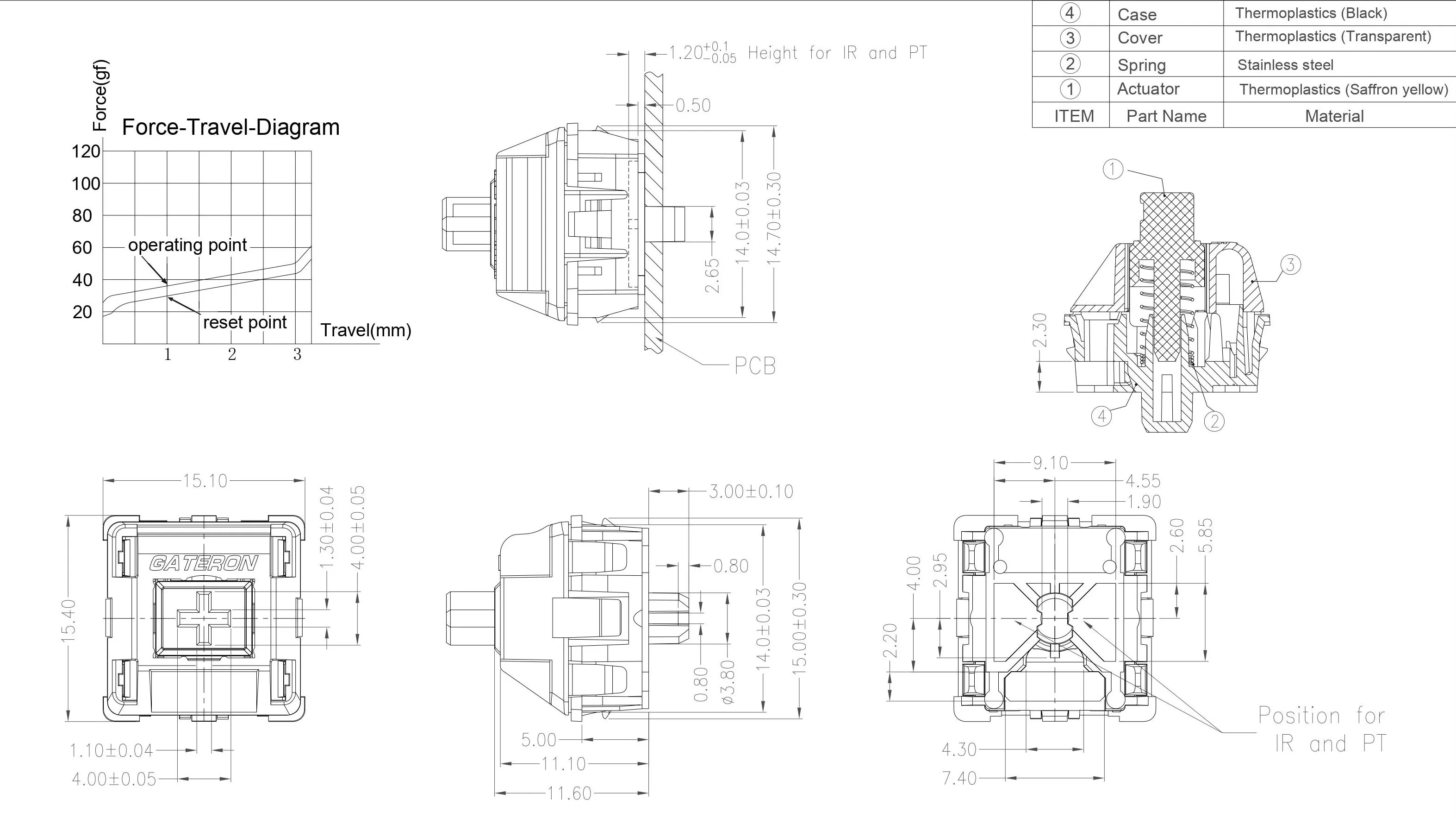 Спецификация:1. Рабочая сила: 35 ± 15 ГФ, линейная.2.Pretravel: 1,0 ± 0,1 мм.3. Общий путешествия: 3,2 + 0-0,3 мм.4. Срок службы: 80000000 циклов (мин)