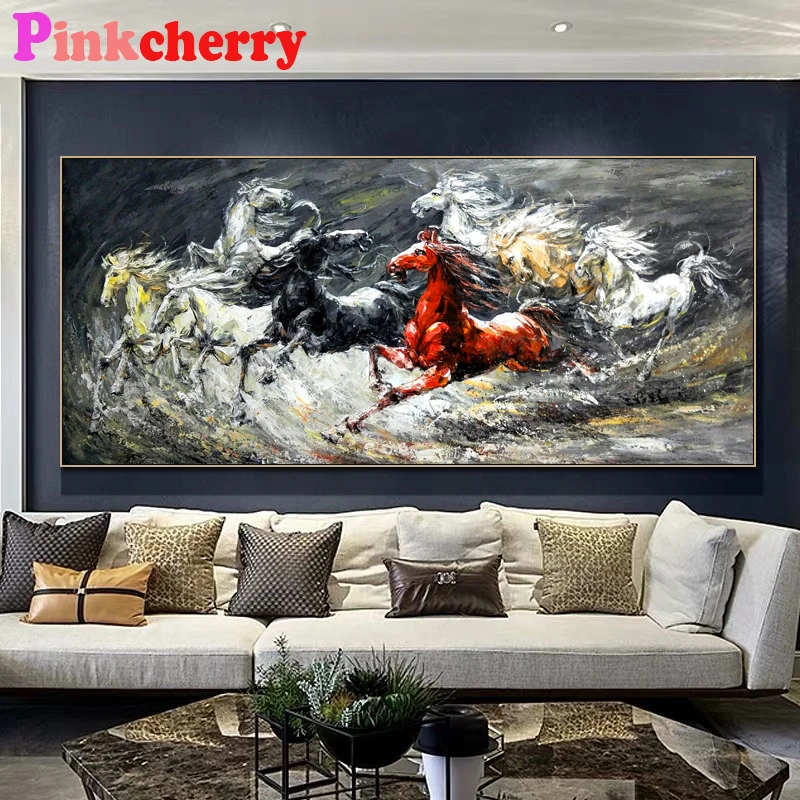 5d полноразмерная квадратнаякруглая Алмазная вышивка сделай сам, абстрактная бегущая лошадь, алмазная живопись большого размера