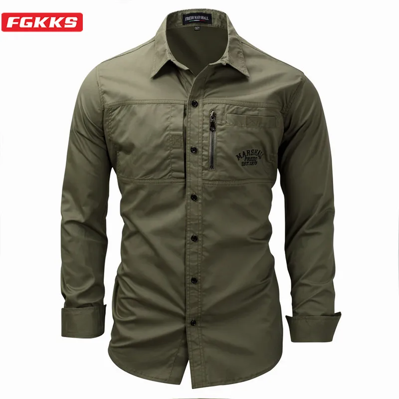 Мужская рубашка в стиле милитари FGKKS, Повседневная Уличная рубашка из 2021 хлопка, приталенная, 100%