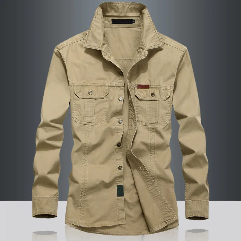 Быстросохнущая Мужская тактическая одежда в стиле милитари, рубашка с длинным рукавом для кемпинга, отложной воротник, рубашка большого размера, мужская рубашка цвета хаки