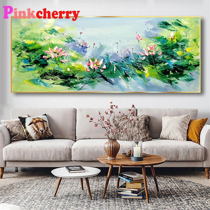 5d полноразмерная квадратнаякруглая Алмазная вышивка сделай сам, абстрактная картина большого размера с цветком лотоса, алмазная живопись