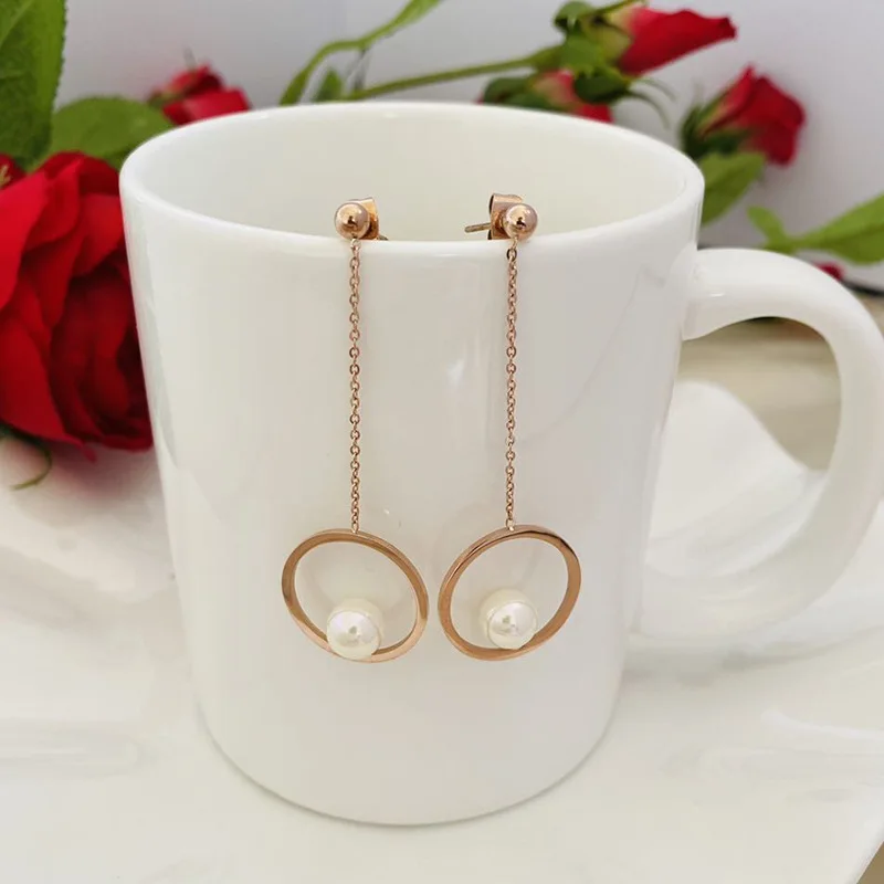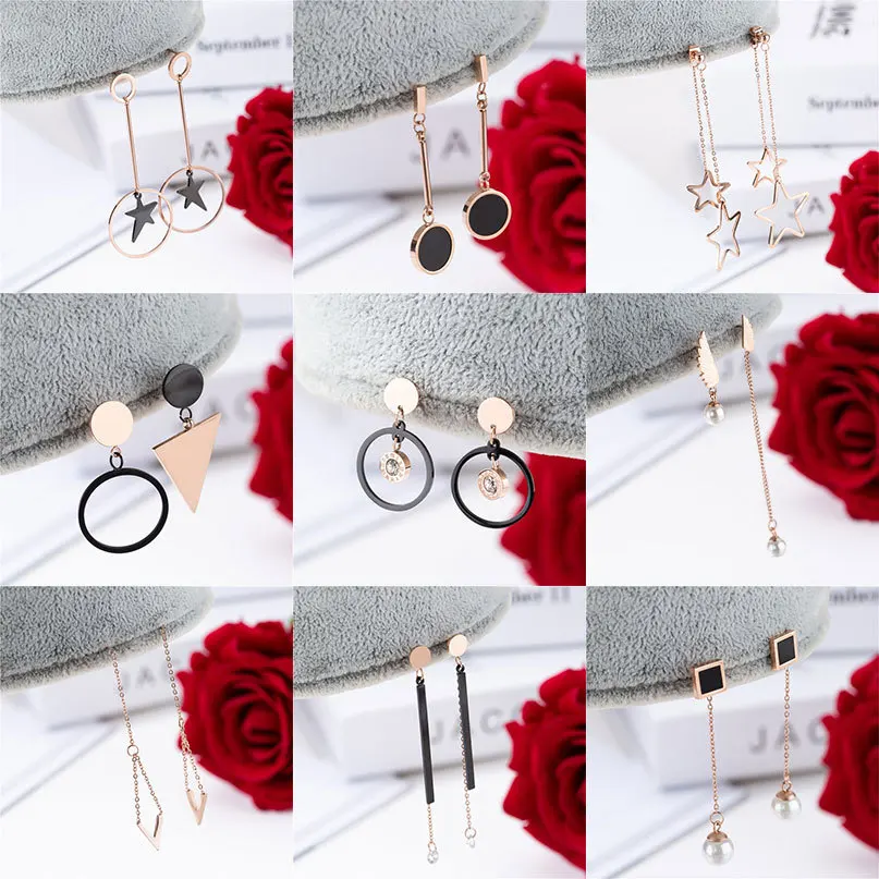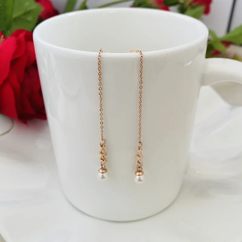 Новинка 2021, креативные серьги из титановой стали, Женские Геометрические серьги с кисточками из серии, розовое золото, безделушки, корейские серьги