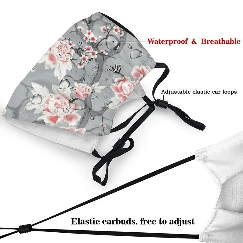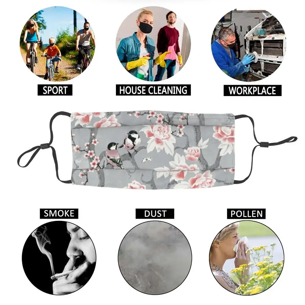 С рисунками в китайском стиле (шинуазри) и птиц в сером цвете многоразовые унисекс маска для лица для взрослых бабочки против дымки пыли Защитная крышка респиратор рот муфельная печь
