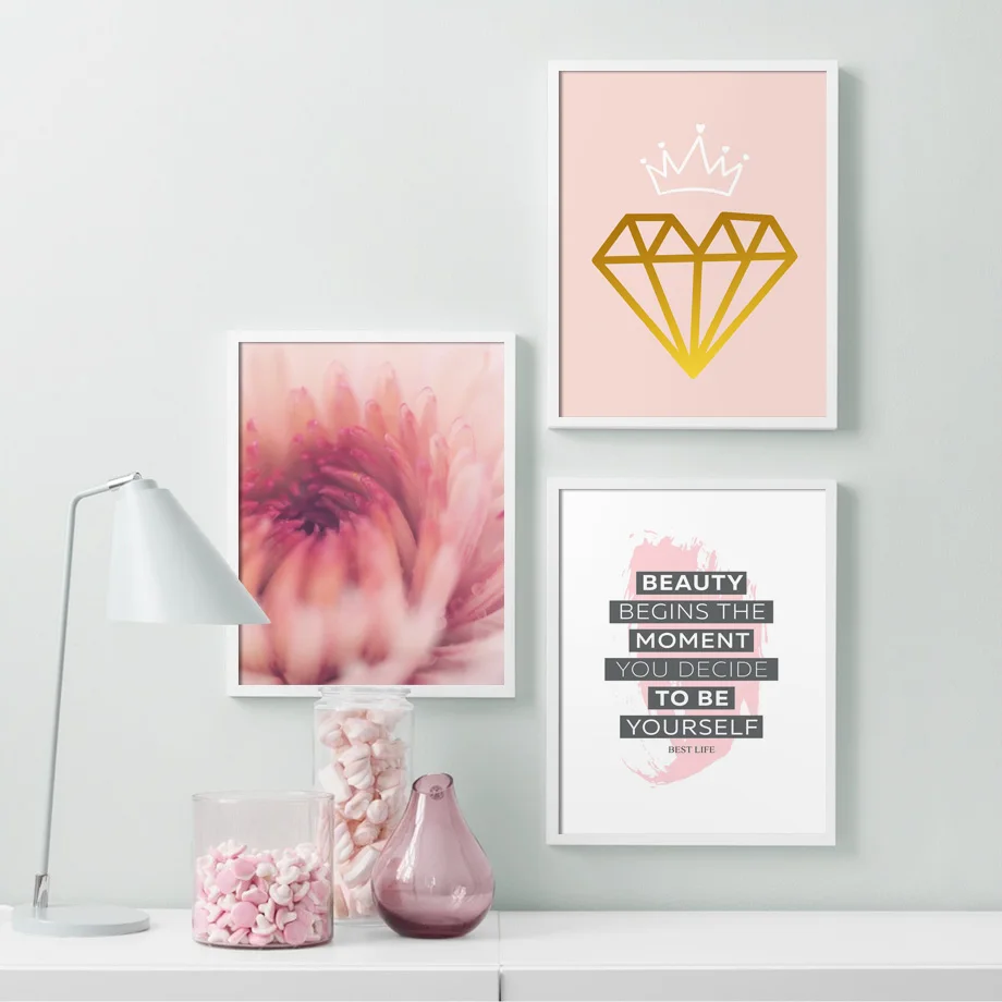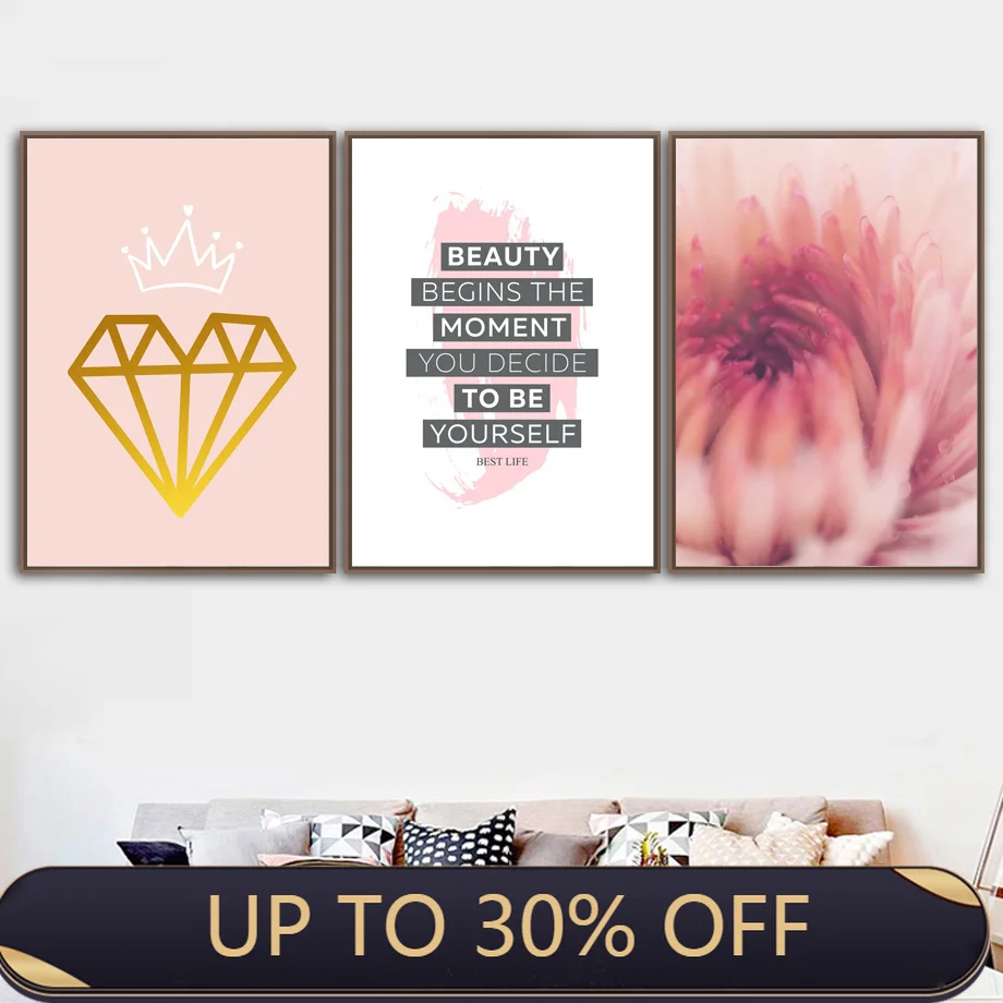Корона, Алмазные цветы, цитаты, скандинавские постеры и принты, настенная живопись на холсте, настенные картины для гостиной, декор для девочек