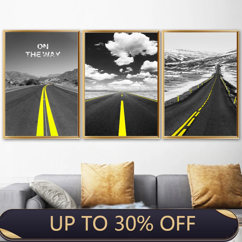 Настенное художественное полотно, живопись, интерьерное шоссе, скандинавские фото плакаты и принты, черные и белые холсты, картины для декора гостиной