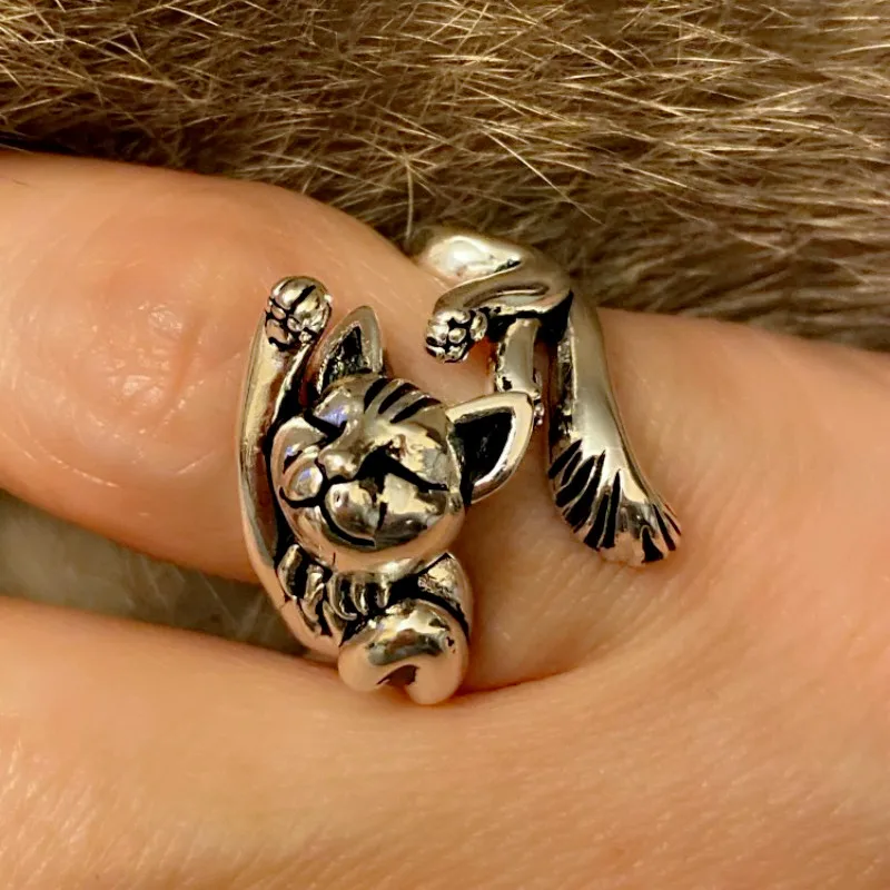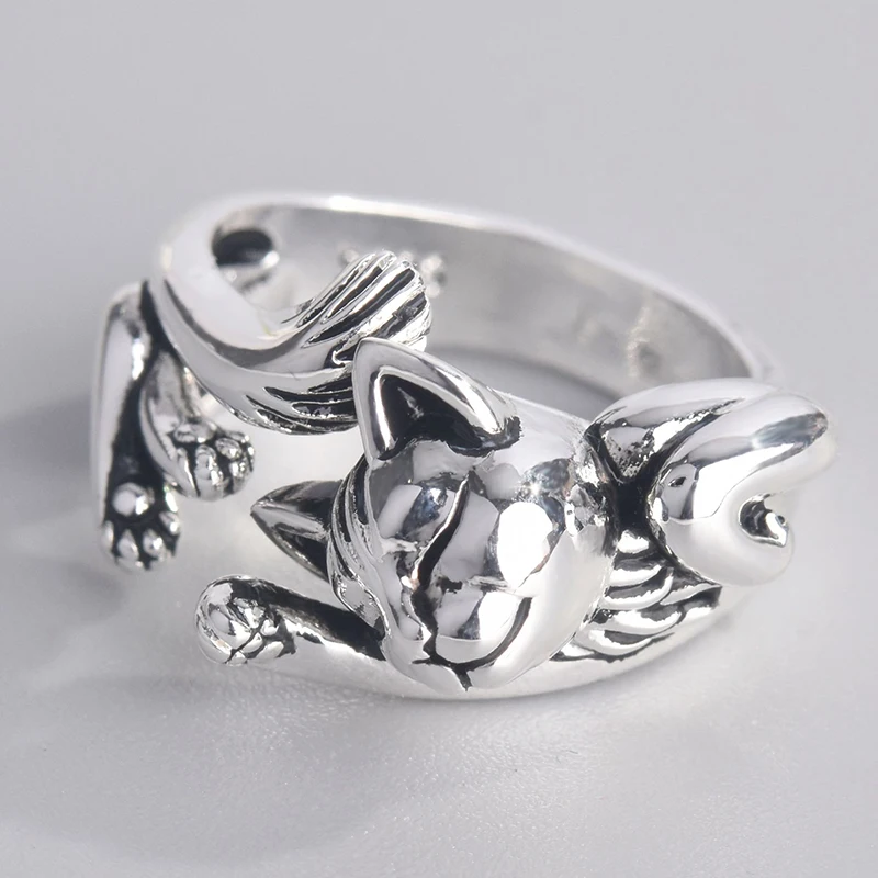 Кольцо с открытыми пальцами для мужчин и женщин, нейтральное Ювелирное Украшение в стиле панк с декором спящего кота, уникальный подарок с животным