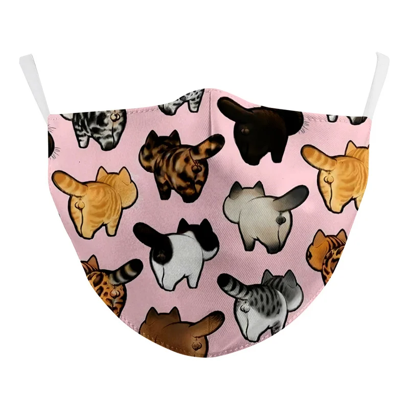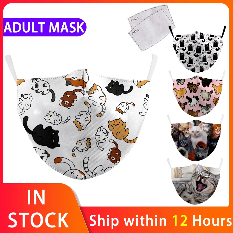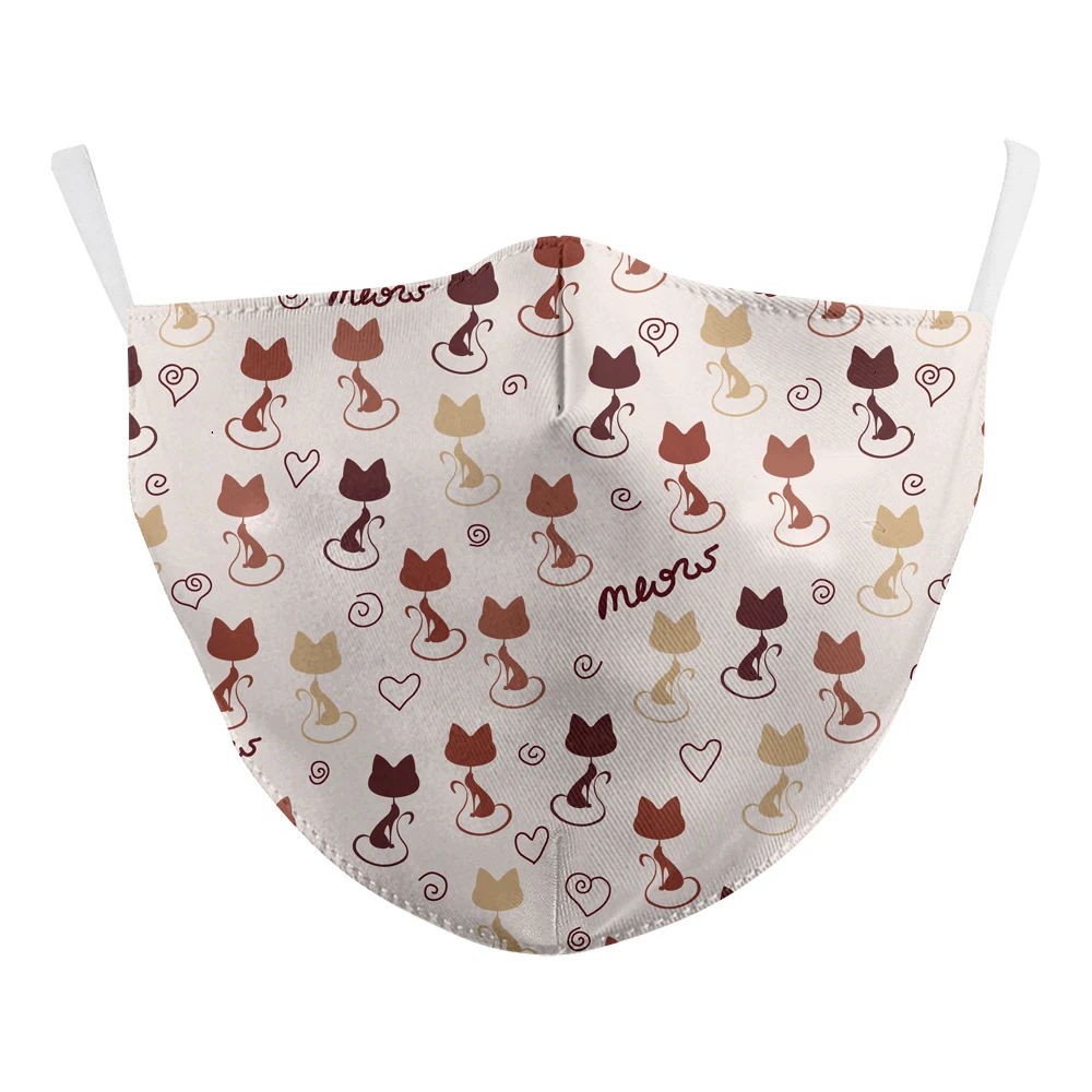 Маска многоразовая Тканевая маска для лица для взрослых, пылезащитная дышащая, с мультяшным принтом кота
