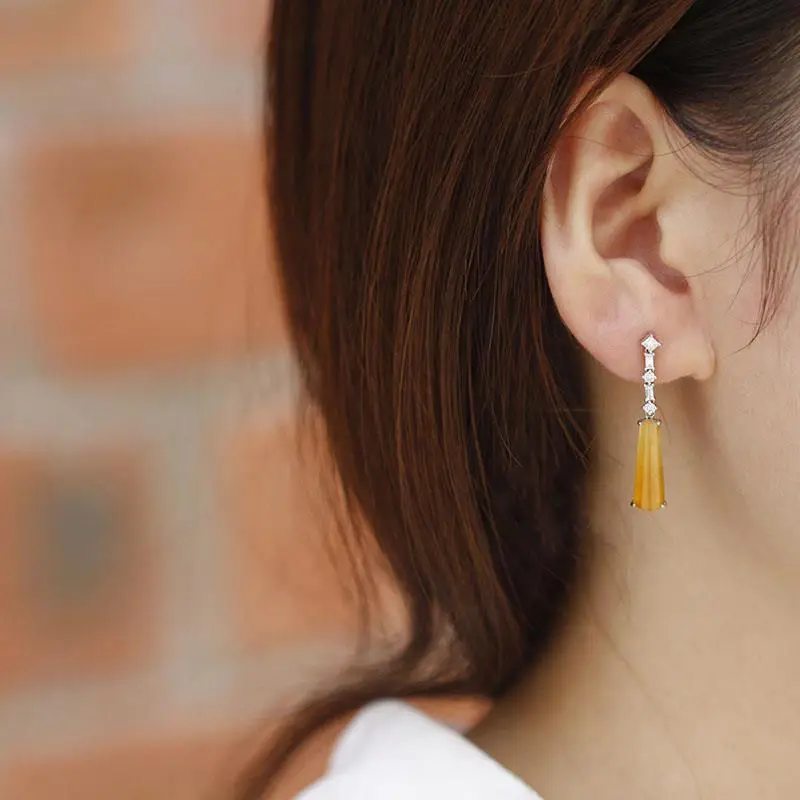 Серьги с халцедоном в китайском ретро-стиле женские, оригинальные ювелирные украшения с геометрическим рисунком, цвет желтый медовый, с подвеской