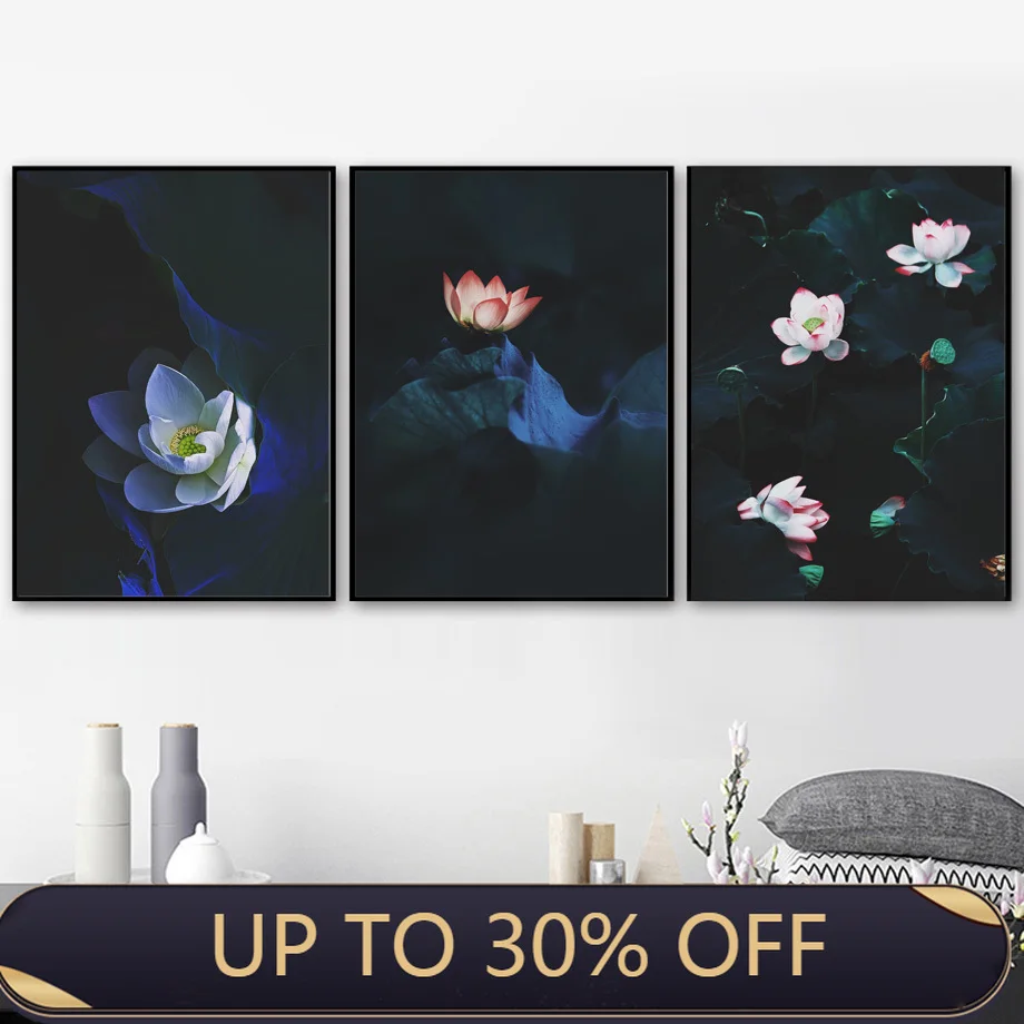 Настенная картина с цветами лотоса, скандинавские постеры и принты на холсте для гостиной, спальни