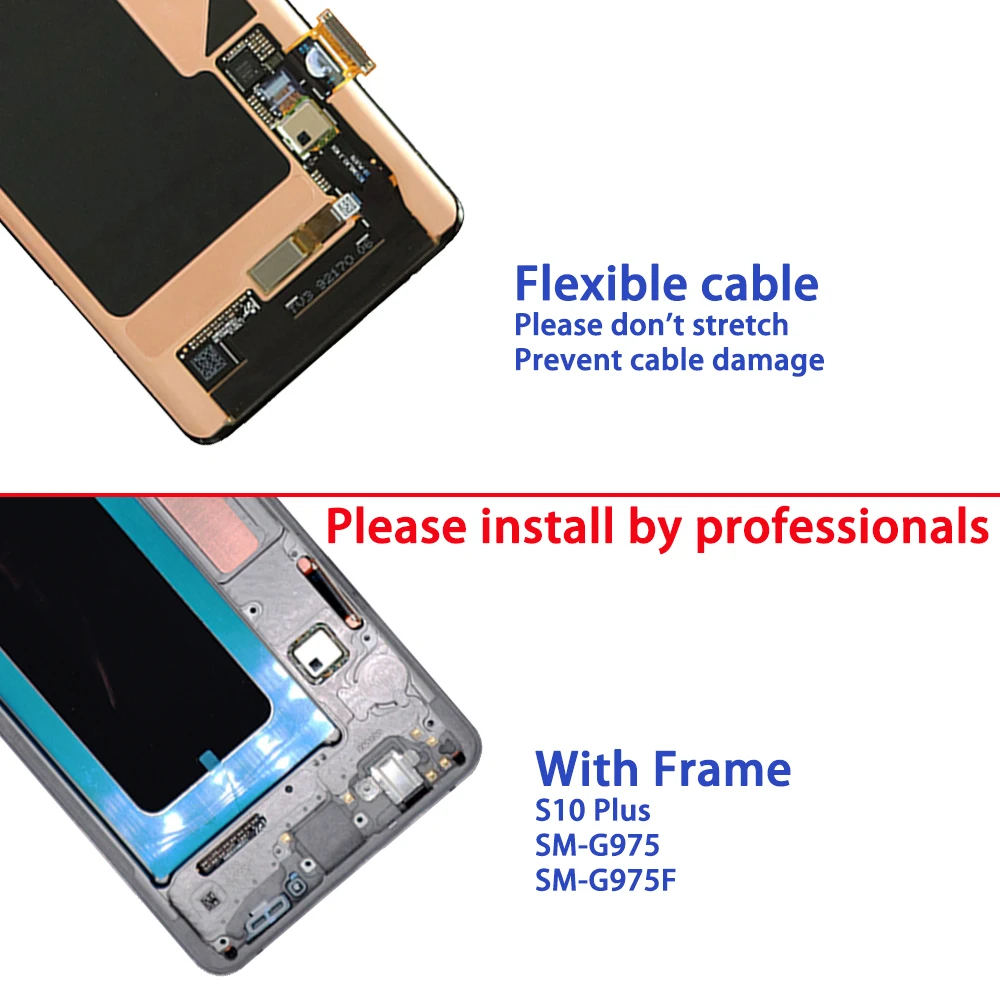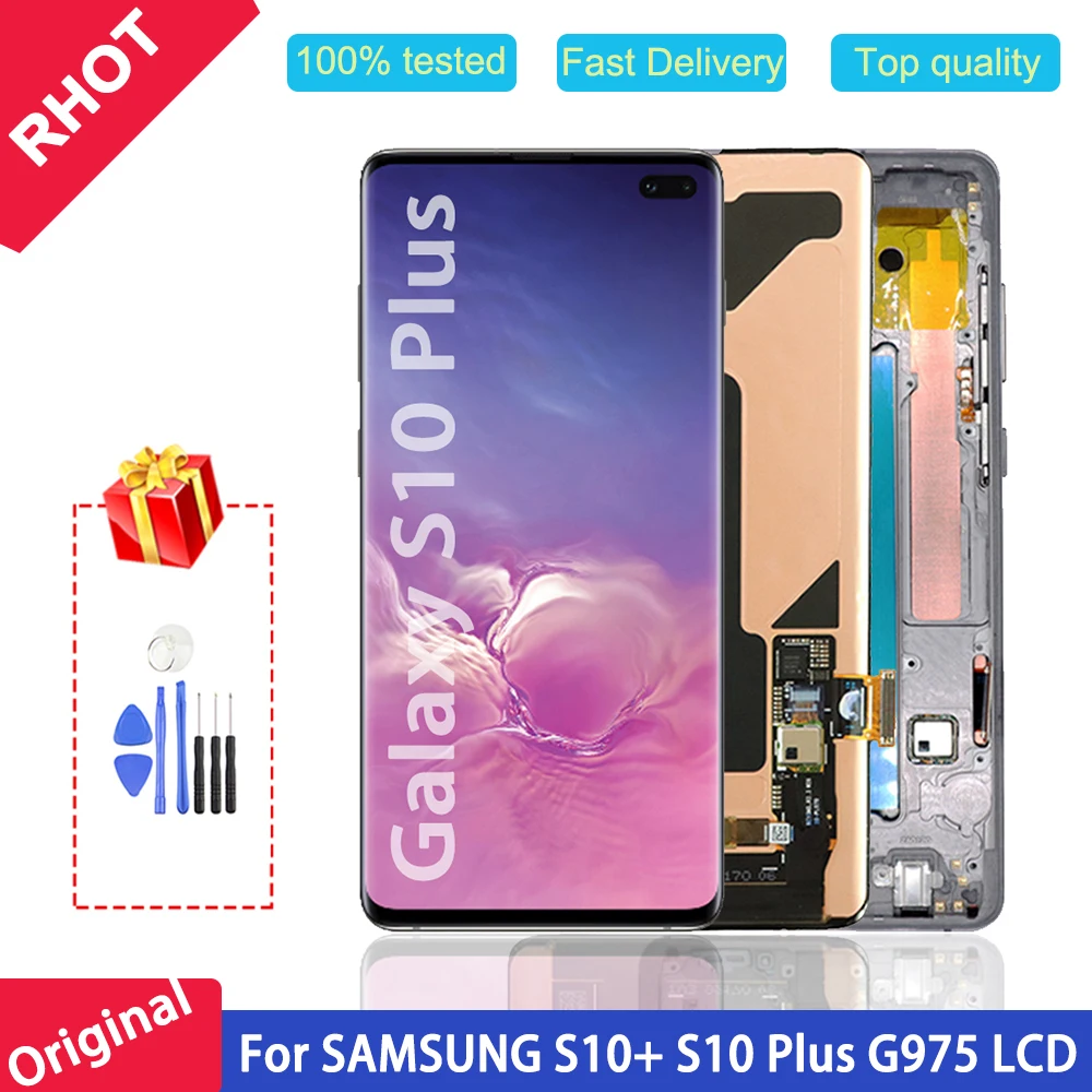 100% протестированный 6,4 "оригинальный AMOLED S10 + ЖК-дисплей для Samsung Galaxy S10 Plus SM-G9750 G975F ЖК-сенсорный экран дигитайзер в сборе