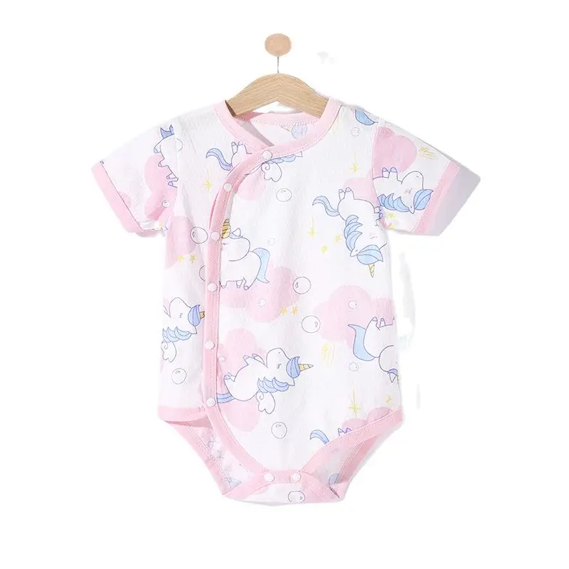 Новинка 2021, летняя одежда Unini-yun, комбинезон для маленьких мальчиков и девочек, детский комбинезон, наряд для младенцев, хлопковая одежда с короткими рукавами и закрытыми пуговицами и круглым вырезом