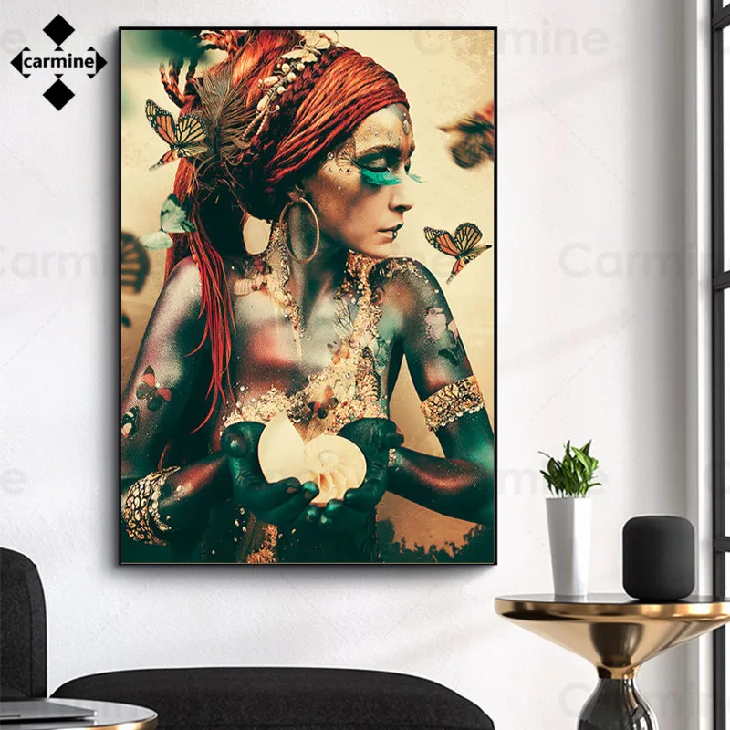 Современная Картина на холсте для леди, темно-зеленый плакат и печа...