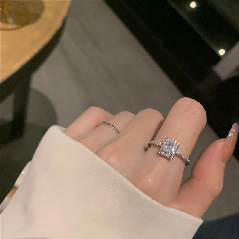 Женское кольцо с квадратным кубическим цирконием MENGJIQIAO, корейский стиль, открытое регулируемое кольцо