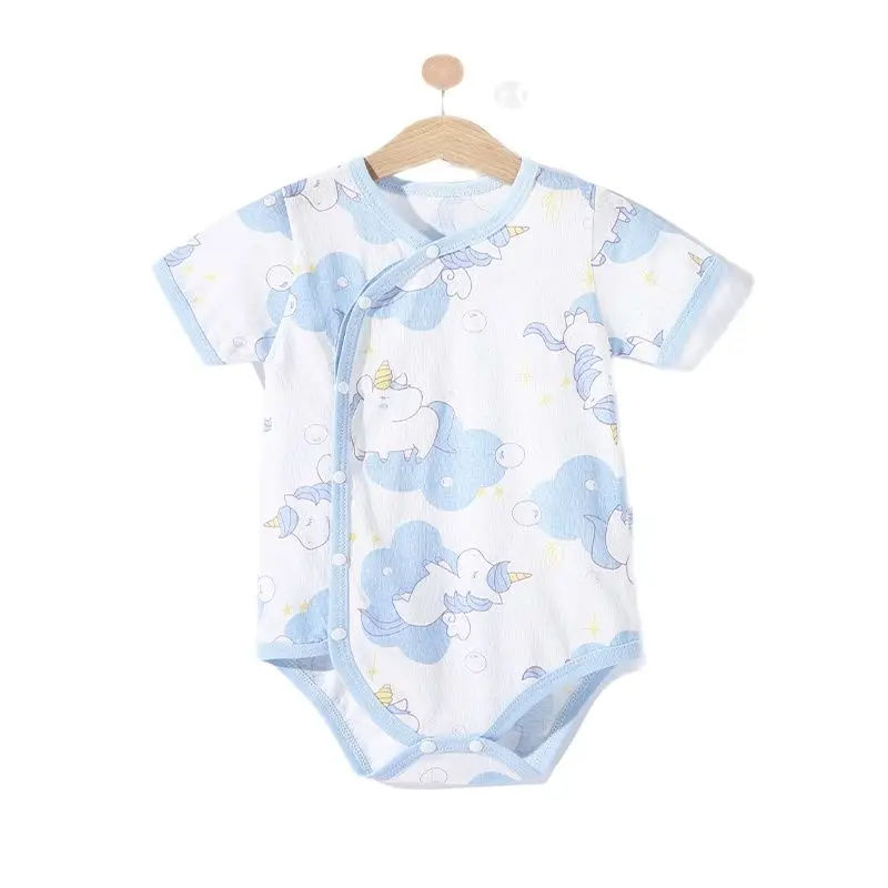 Детский комбинезон с короткими рукавами, круглым вырезом и мультяшным принтом, 2021
