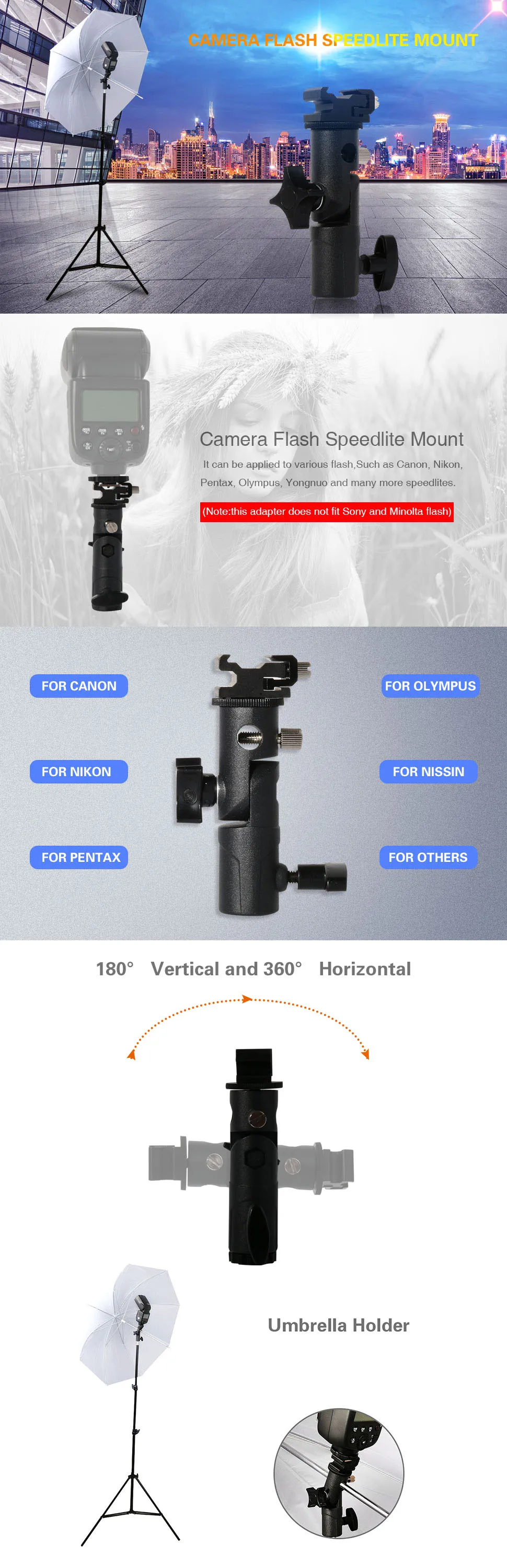 Этот адаптер не подходит для вспышек Sony и Minolta.Зонт, светильник и вспышка speedlite не входят в комплект.Только вышеуказанная посылка, другие товары не включены.Примечание: светильник и различные дисплеи могут привести к тому, что цвет товара на картинке немного отличается от реального. Допустимая погрешность в измерениях-1-3 см.