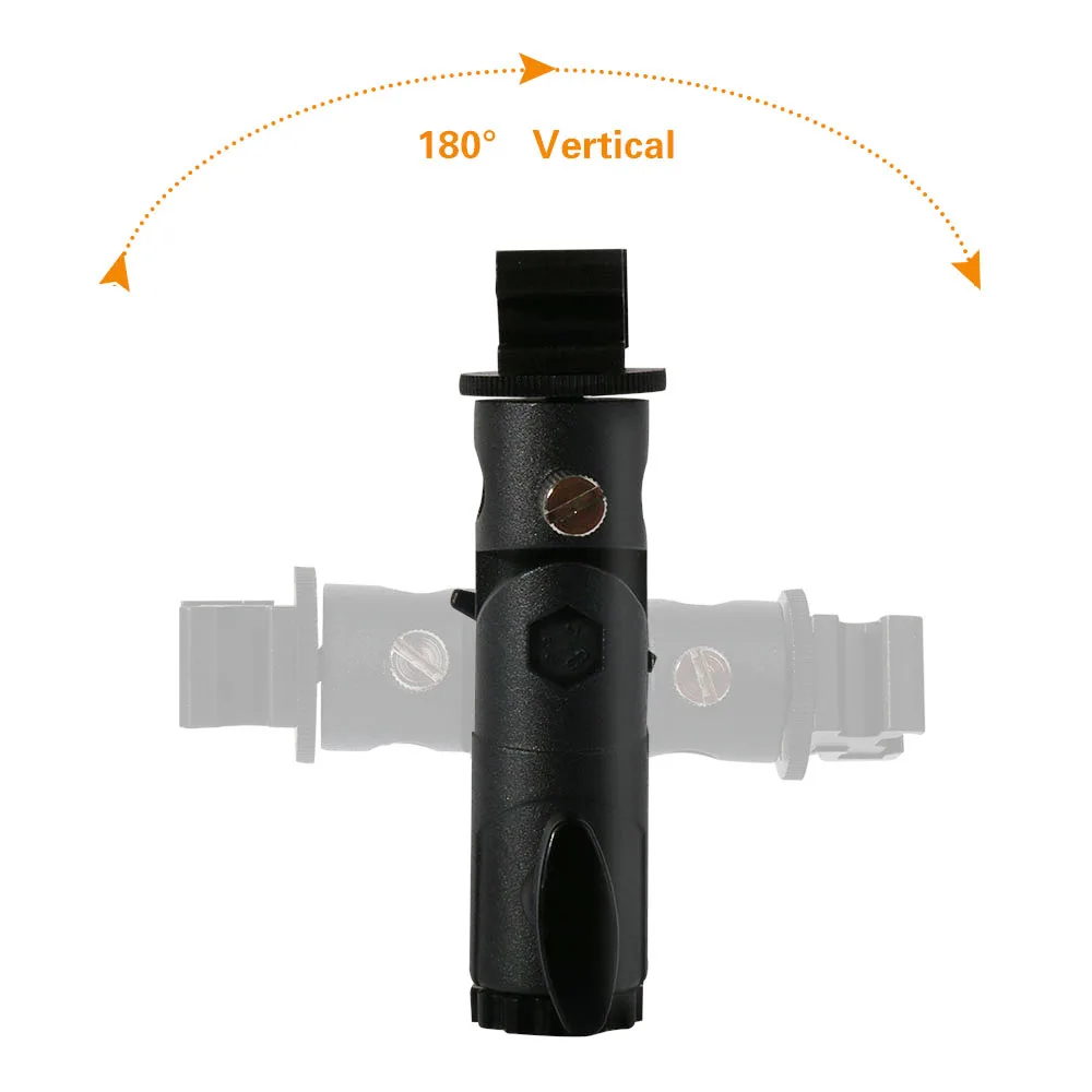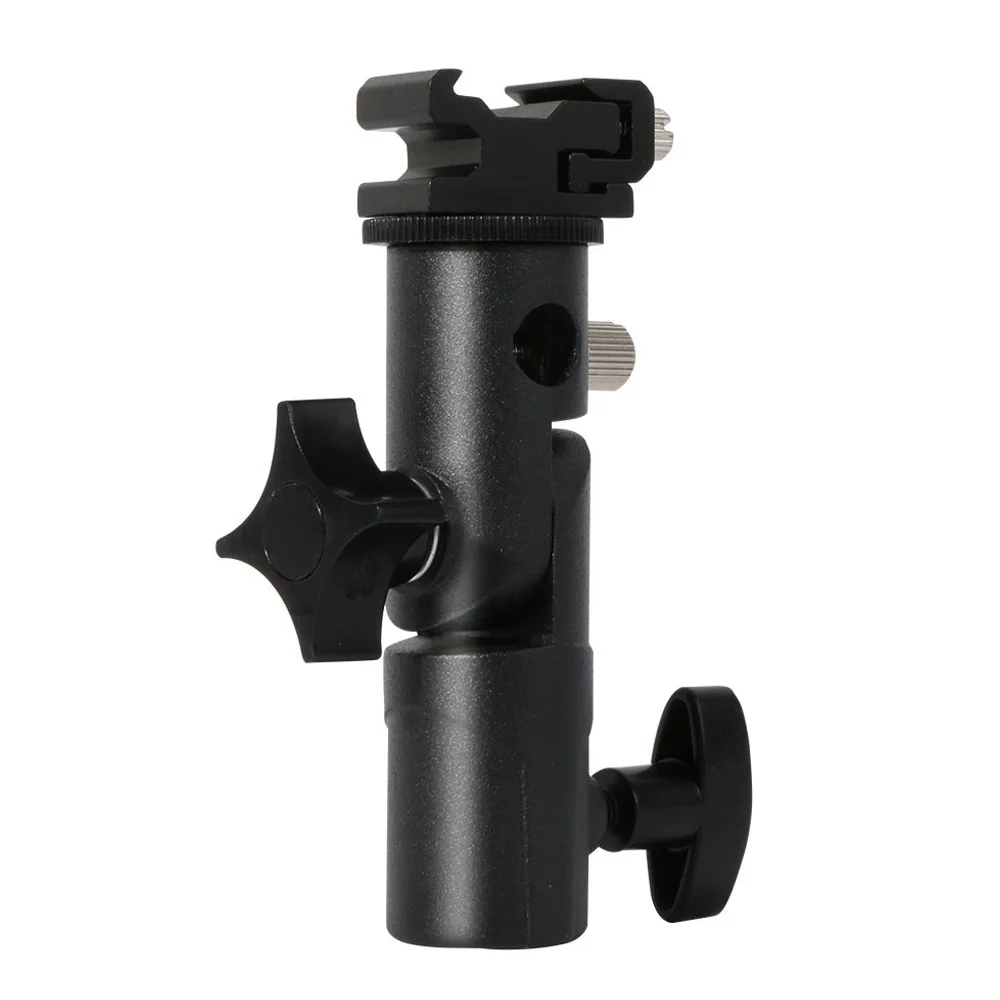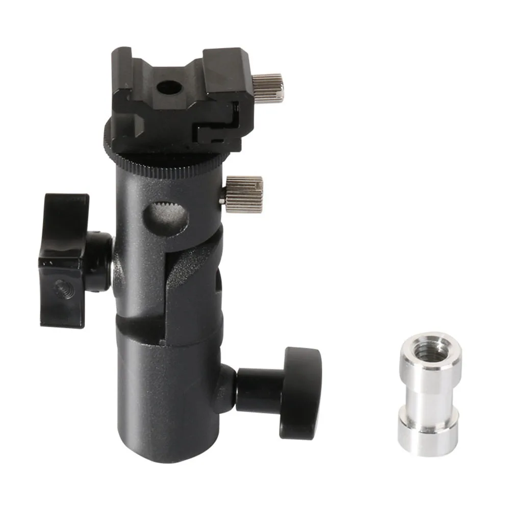 Универсальный кронштейн: Универсальное металлическое Крепление для холодной обуви сверху для крепления вспышки на кронштейн. Работа на мониторе, кольцевой светильник, N-ikon Canon speedlite flash, триггер, magic arm, mic и любые аксессуары, которые имеют тип камеры обувиС держателем зонтик для камеры: отверстие с запорным винтом посередине специально разработано для удержания зонта и выравнивания его со вспышкойЭтот кронштейн для вспышки имеет 180 градусов по вертикали и 360 градусов по горизонтали, что позволяет расположить зонтик и вспышку под разным угломВысокое качество и умный дизайн: простой, прочный, прочный и долговечныйЛегко монтируется, с отверстием для крепления зонта. Держатель для вспышки с холодным башмаком сверху, который подходит для всех стандартных вспышек горячего башмака. Прикрепите 1/4 дюймов до 3/8 дюймов винт-адаптер с наружной резьбой для крепления вспышки светильник Подставка Кронштейн на штатив-Трипод для камеры или светильник стенд.Цвет: черныйМатериал: металлРазмер: 11х6 см