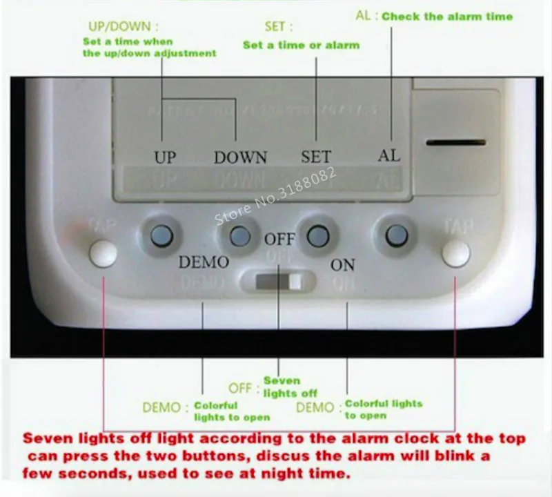 Пожалуйста, установите 2 * AG13 батареи, используемые для отображения времени/даты экрана часов