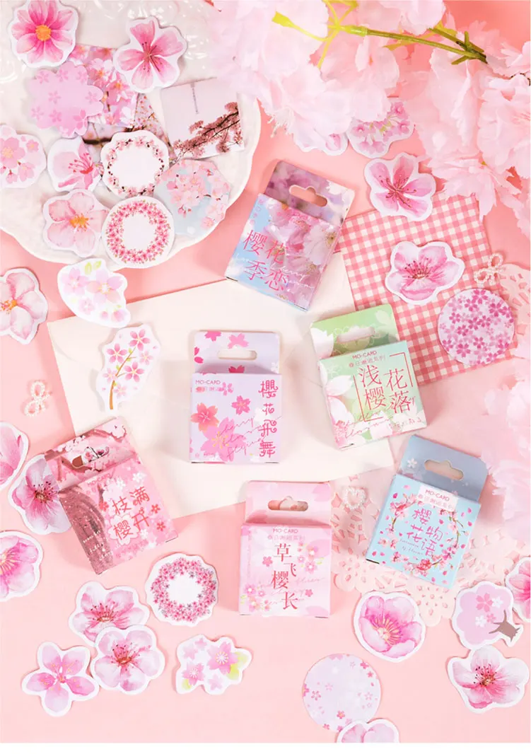 Наклейки для скрапбукинга, декоративные, розовые, цветки сакуры, японской вишни, мини-наклейка, 45 шт., милый дневник
