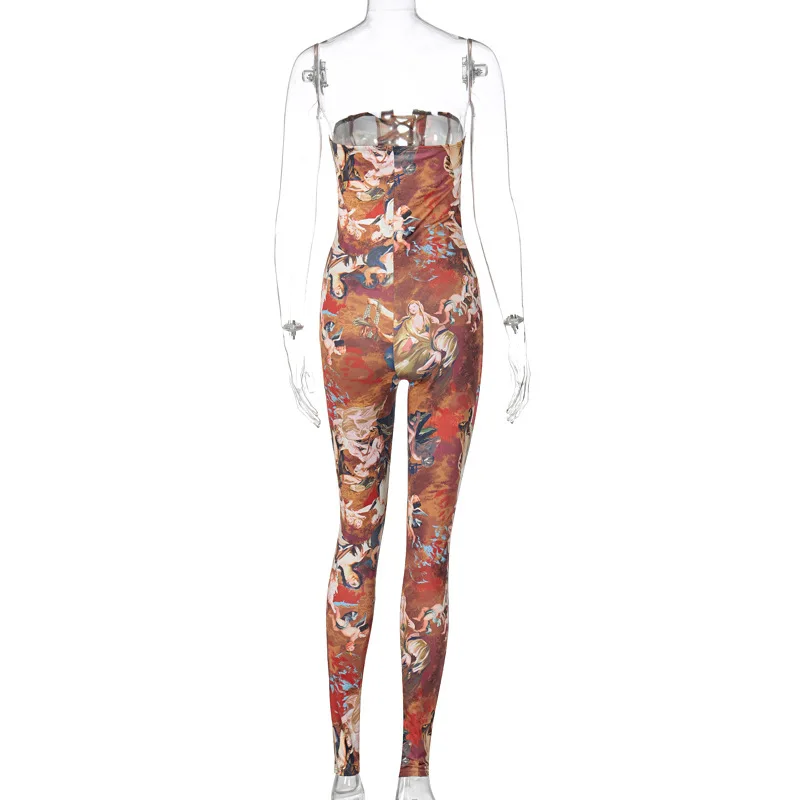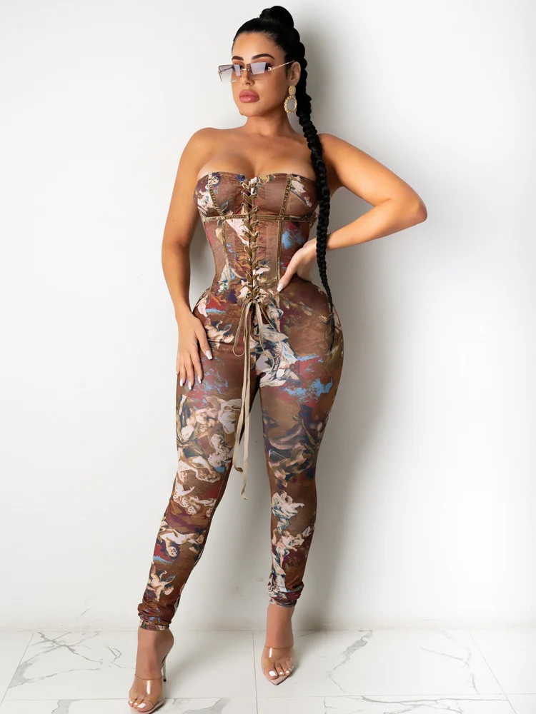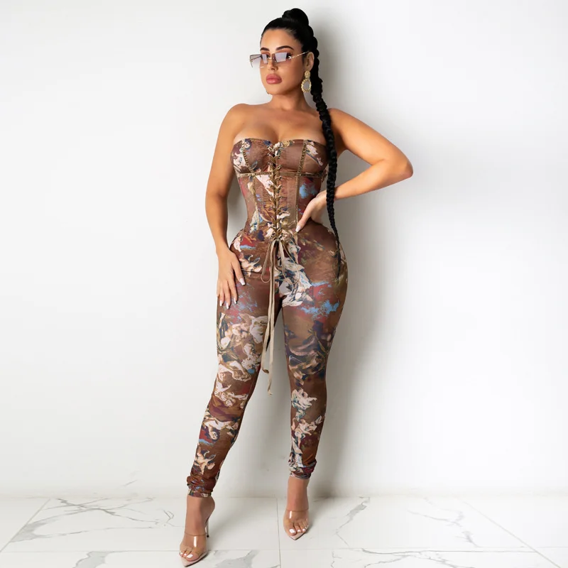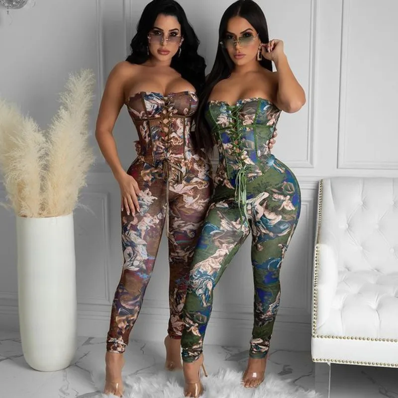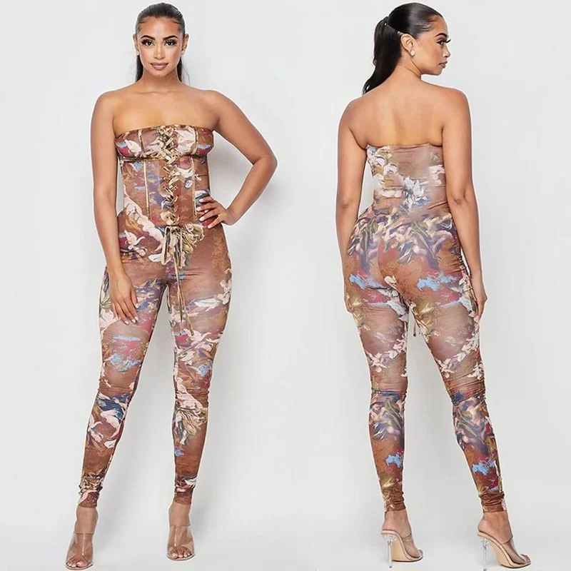 OEM винтажный Печатный без бретелек комбинезон на корсете женский с...