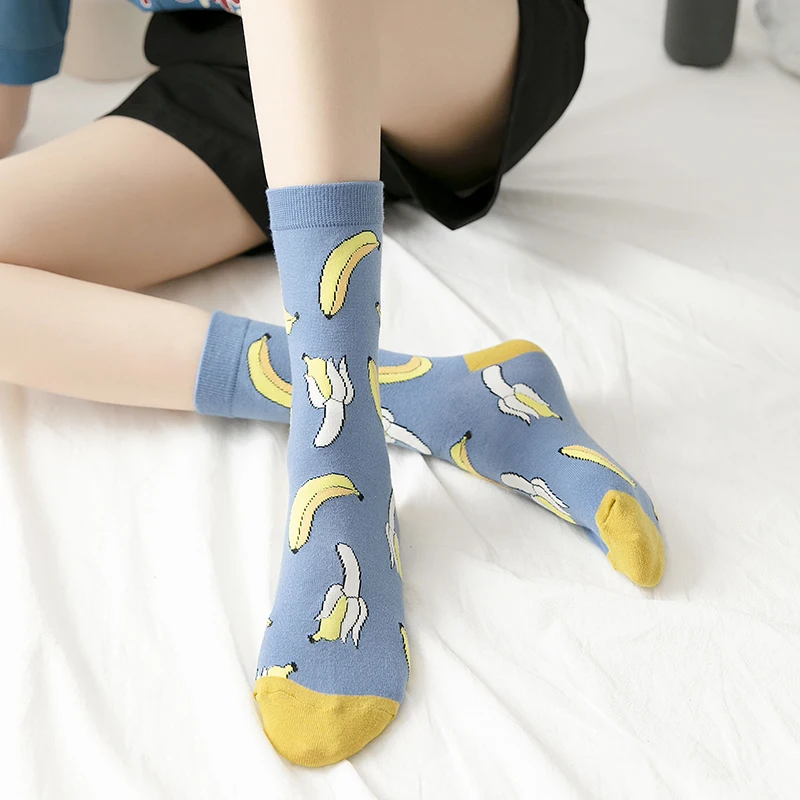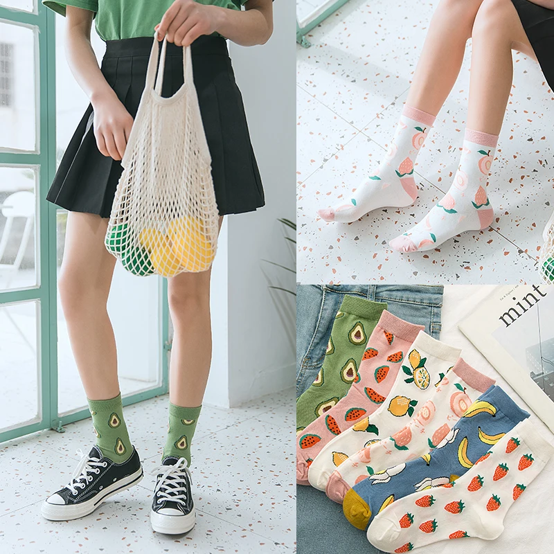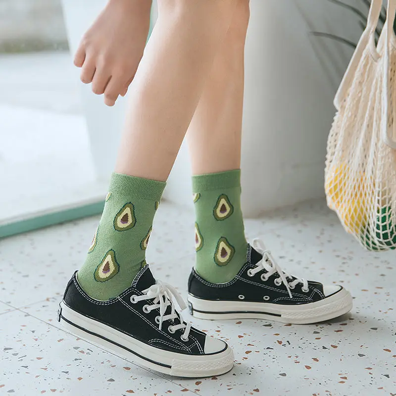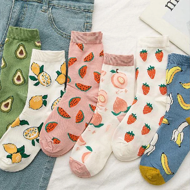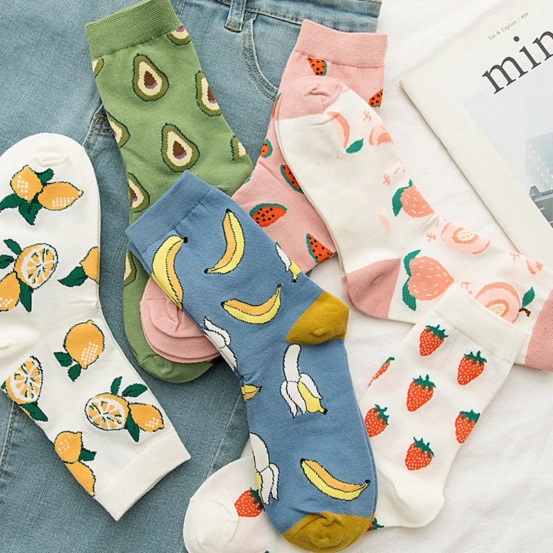 Носки женские с принтом фруктов, хлопчатобумажные забавные носки, авокадо, лимон, клубника, банан, мультяшный рисунок, повседневные, на весну-лето
