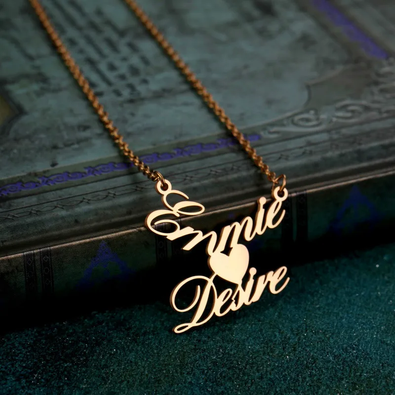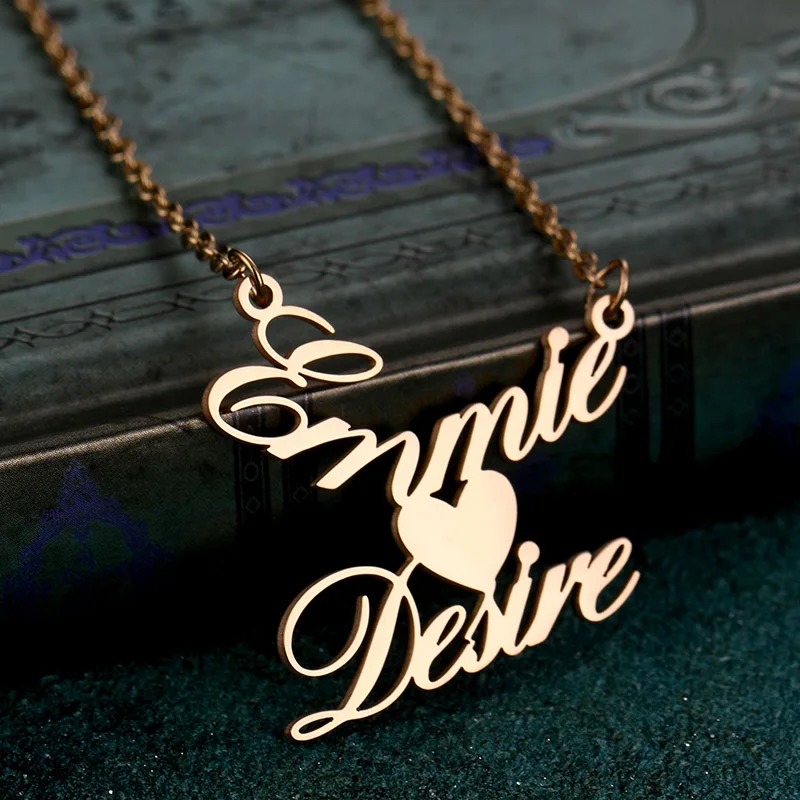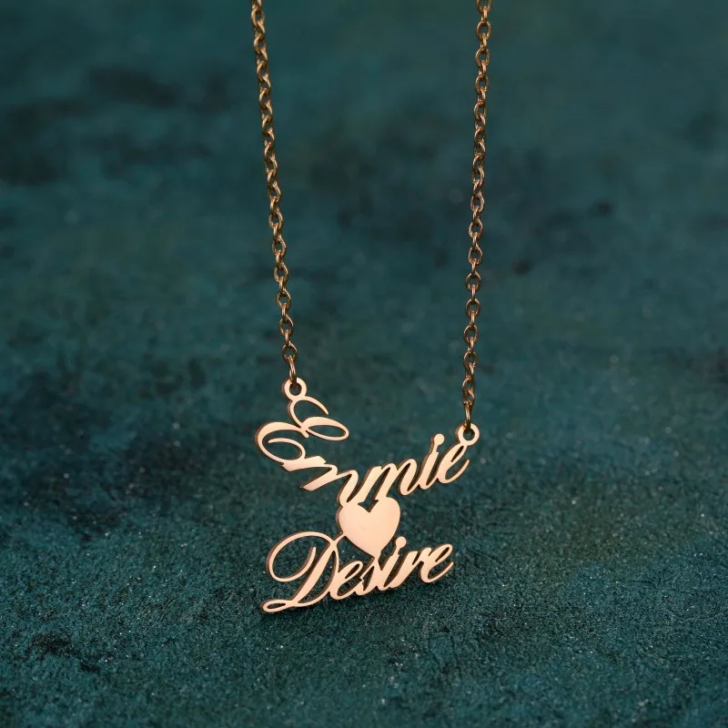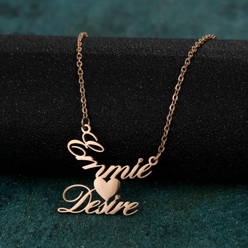 Индивидуальное персонализированное модное ожерелье из нержавеющей стали с именем для женщин, индивидуальный рисунок сердца в середине таблички, ювелирные изделия