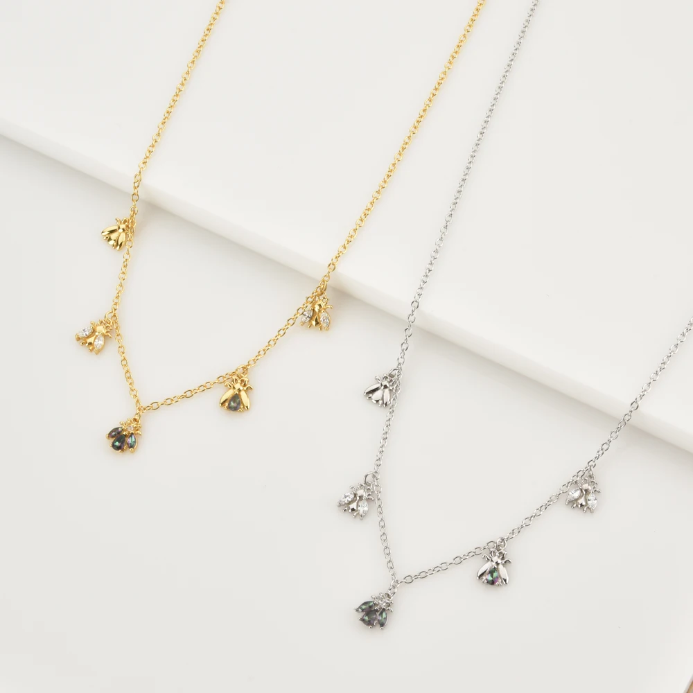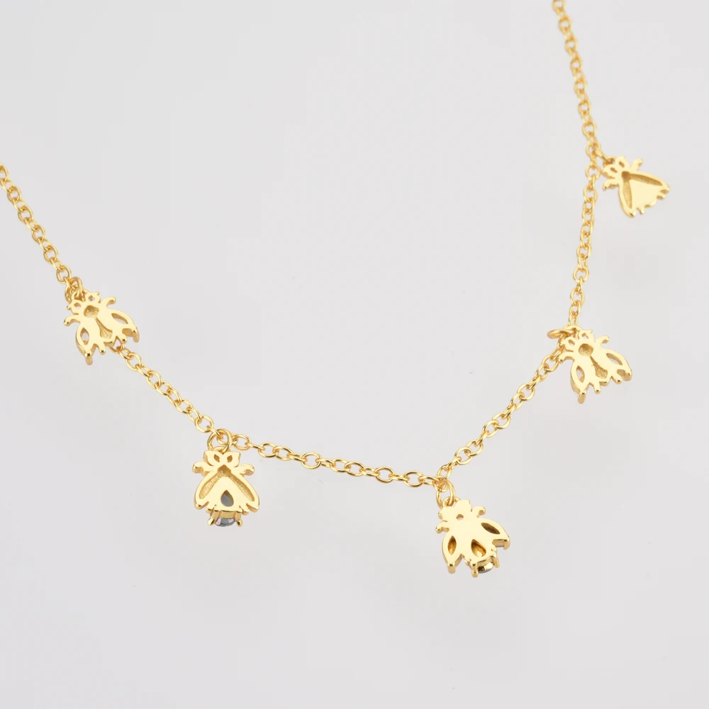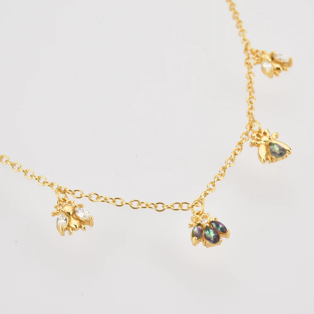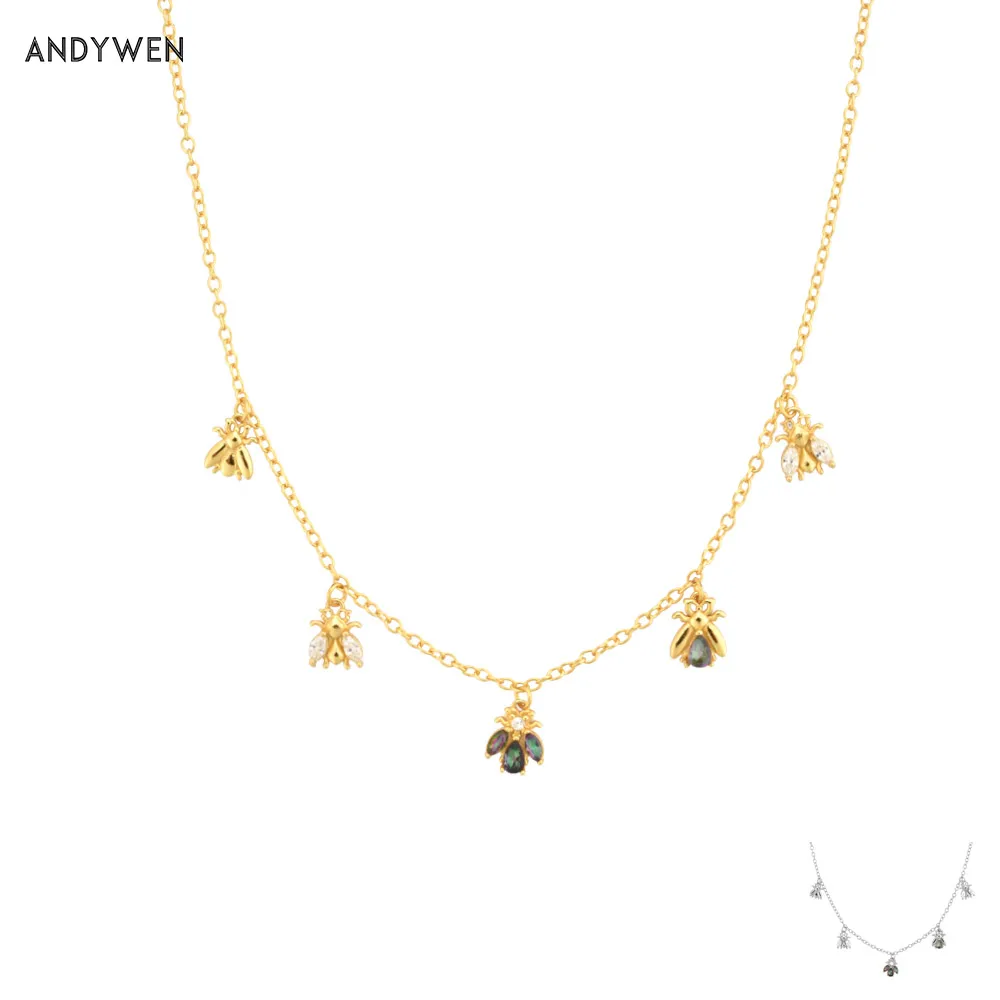 Ожерелье ANDYWEN из серебра 925 пробы с подвеской в виде пчелы золотого цвета, длинная цепочка, модные ювелирные украшения 2021, Свадебные украшения с кристаллами