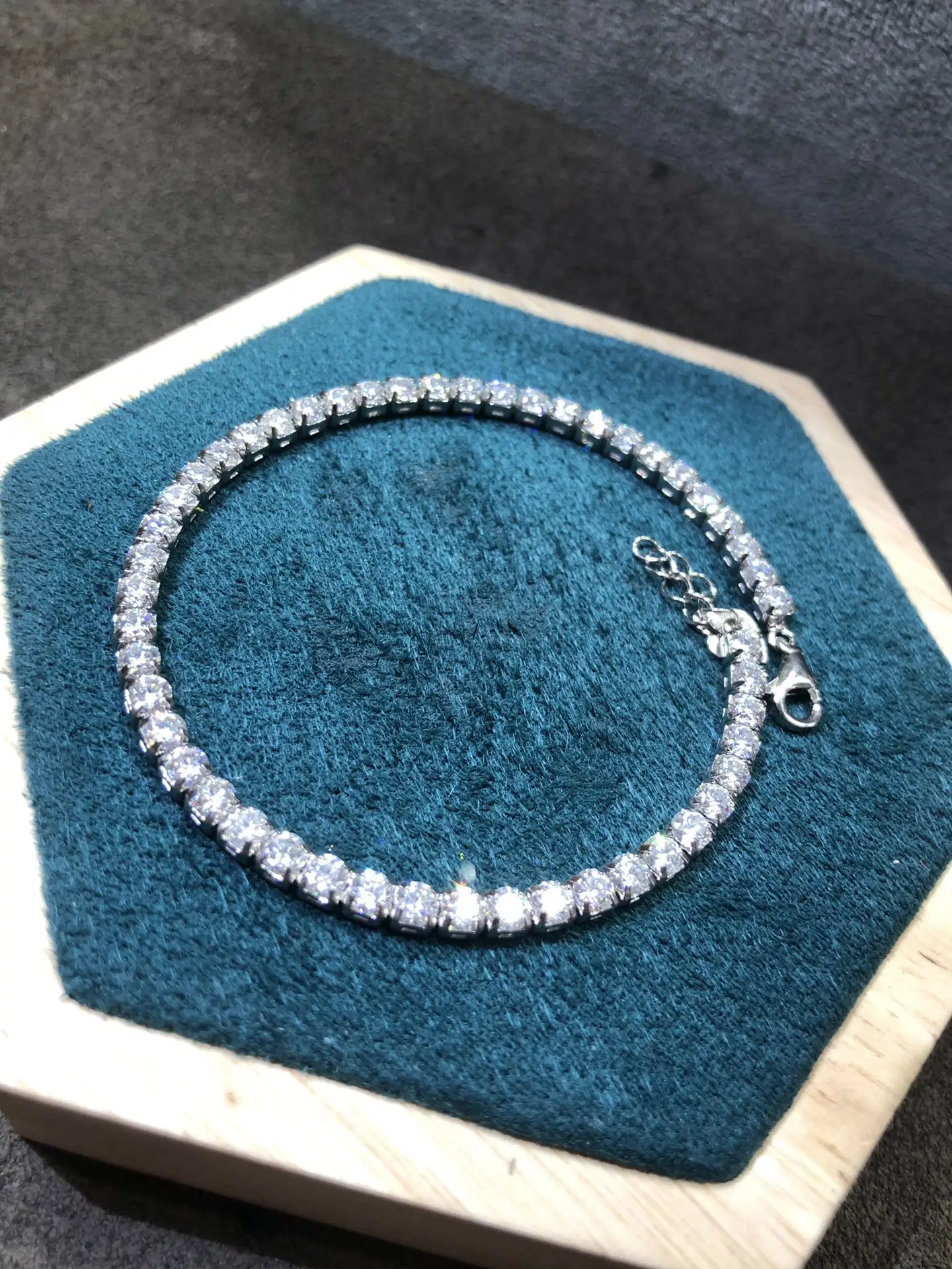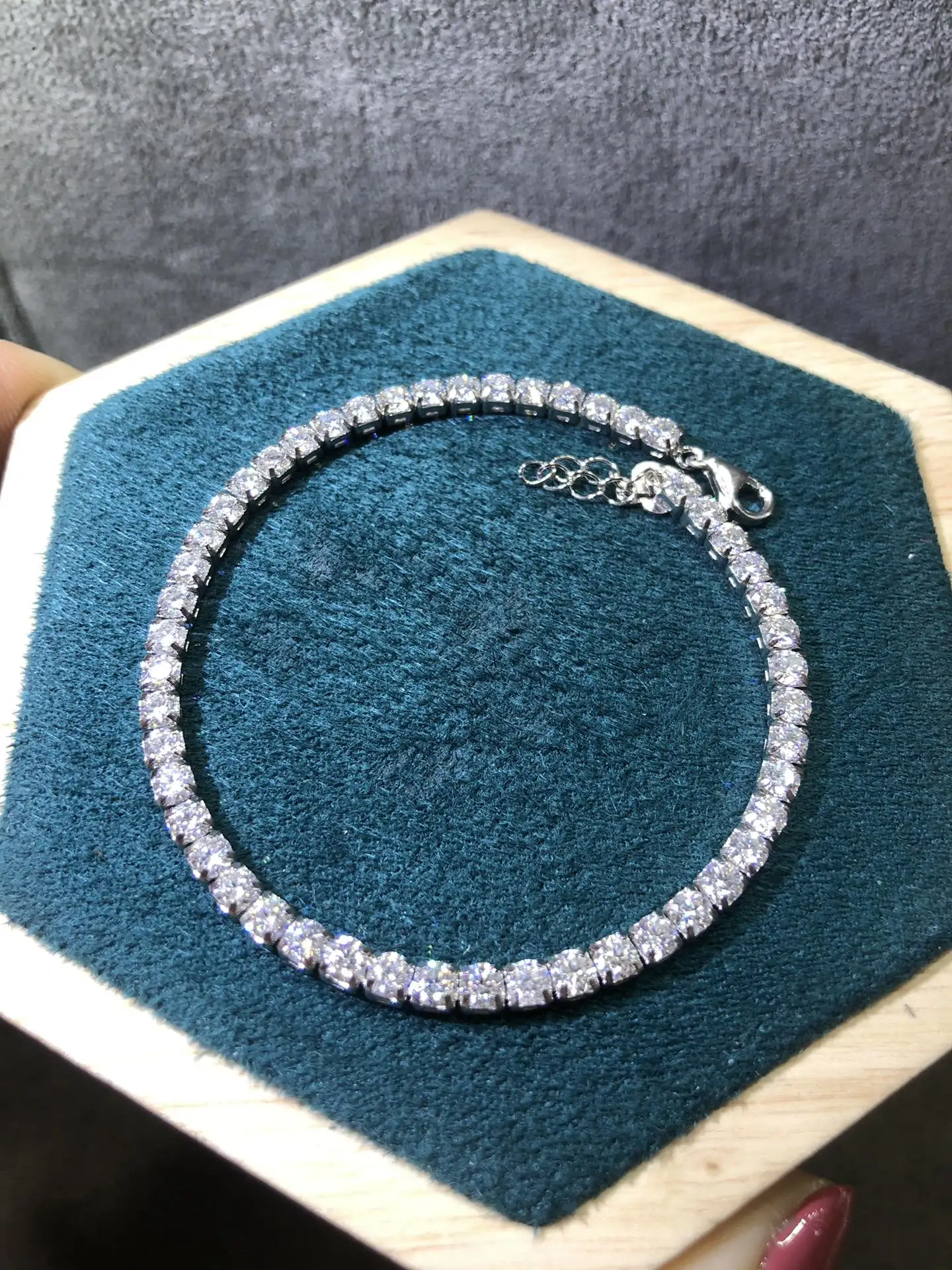 Inbeaut пройти алмаз Тесты круглый отличный крой сверкающий Micro D Цвет Муассанит браслет 925 серебро всего 5 карат муассанит цепи