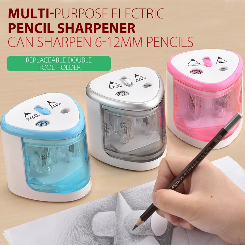 Точилка для карандашей электрическая, с двумя отверстиями, для карандашей 6-12 мм