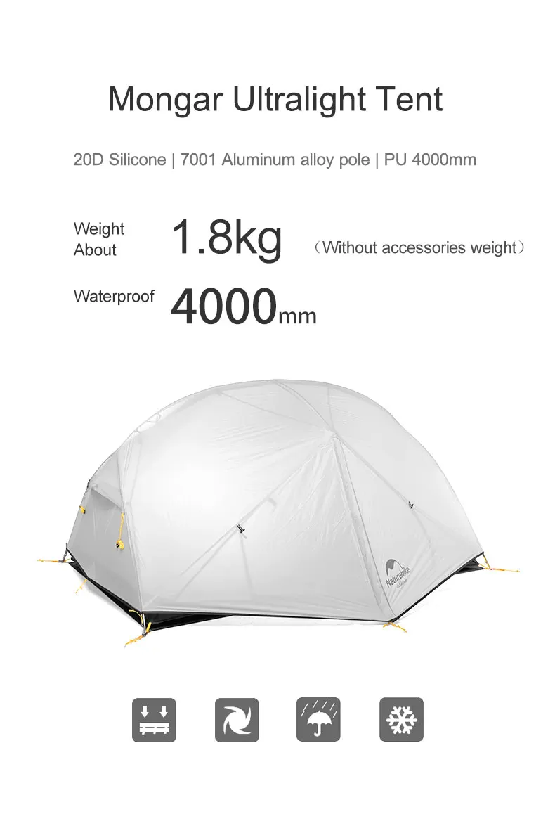 Naturehike Mongar 2 человек Кемпинг 20D нейлоновый витой двойной Слои Водонепроницаемый палатка для 3 сезона NH17T007-M