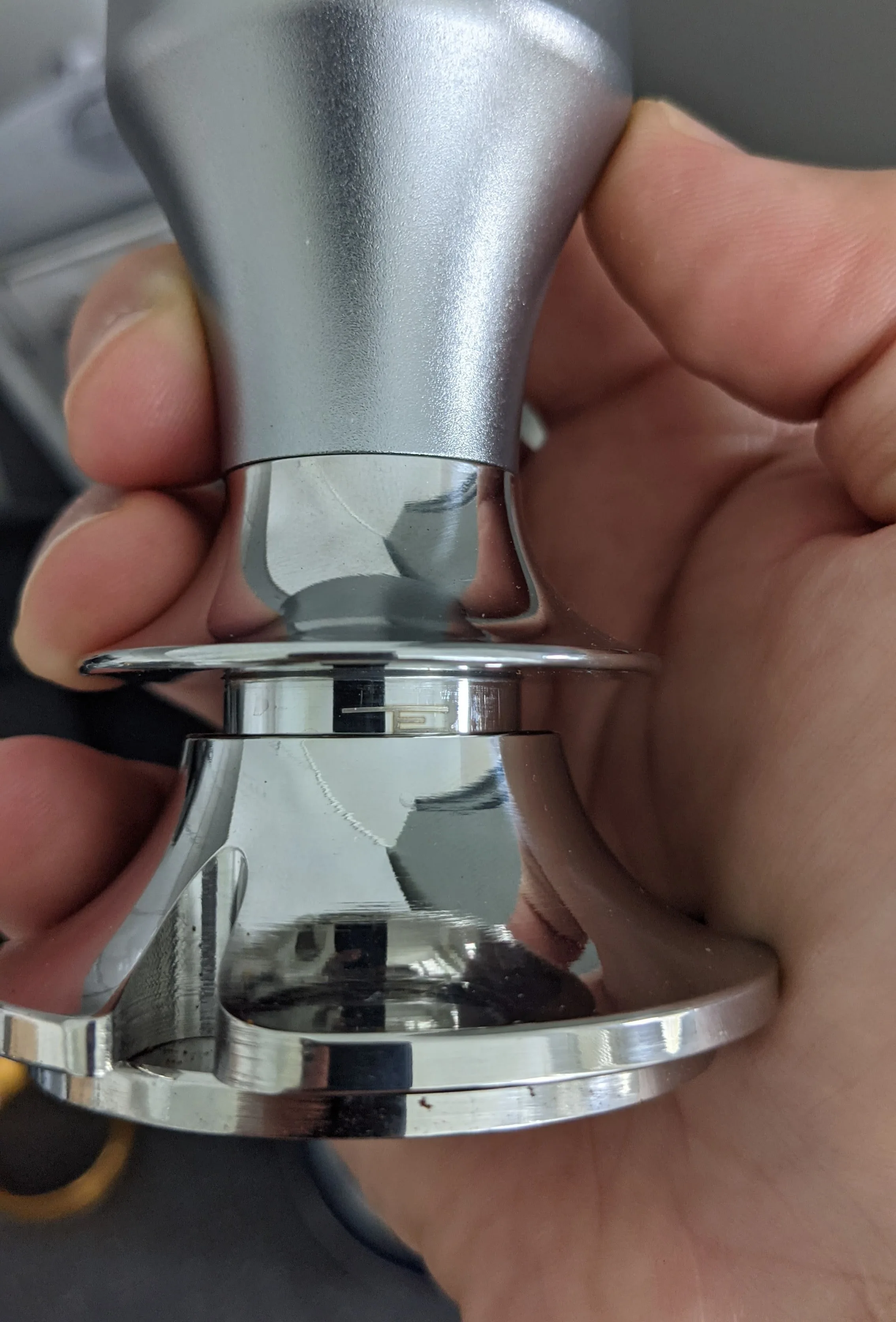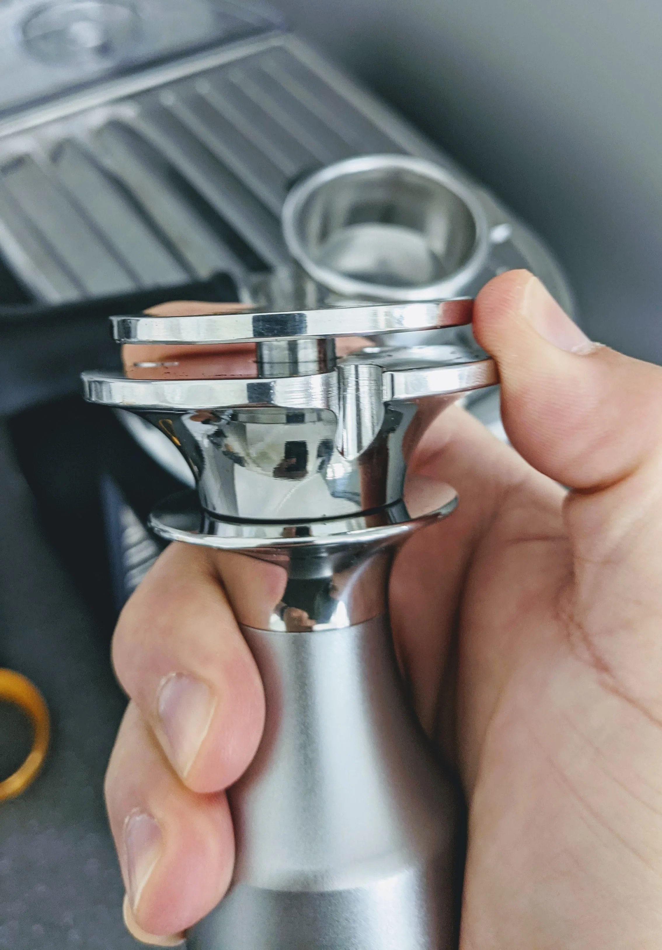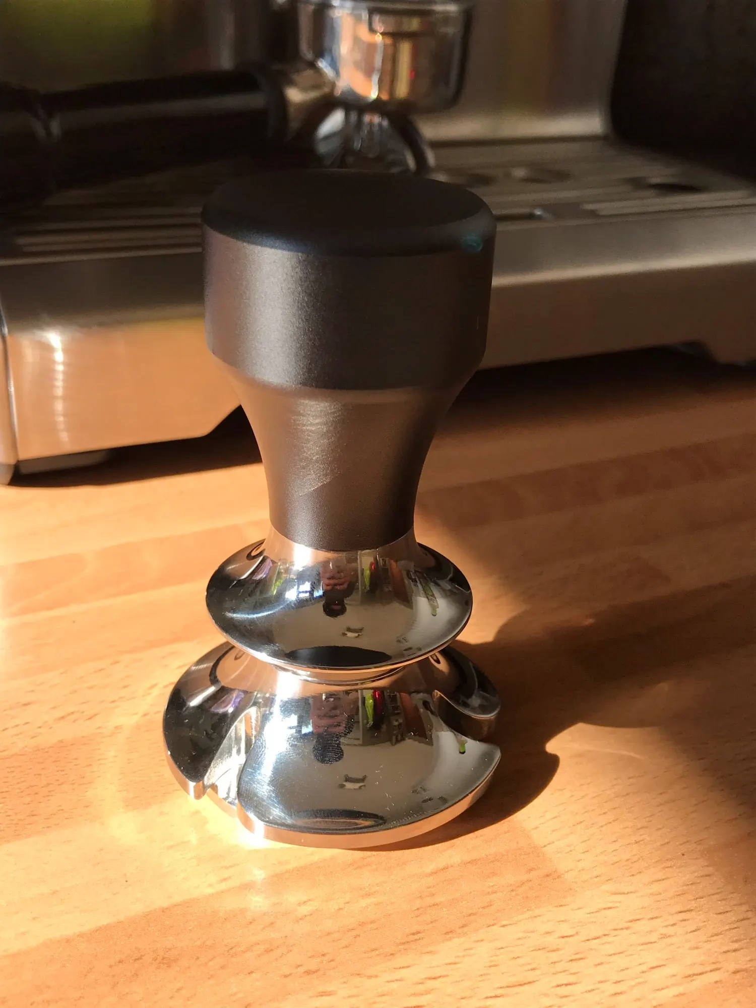 На ощупь Высокое качество и довольно тяжелый. Он также пришел в приятный мешочек. Я получил размер 53 мм, и он подходит для портафильтра 54 мм из брезвиля/Сейдж бариста экспресс. Я купил в основном для функции выравнивания, но возможность установить глубину также полезна.