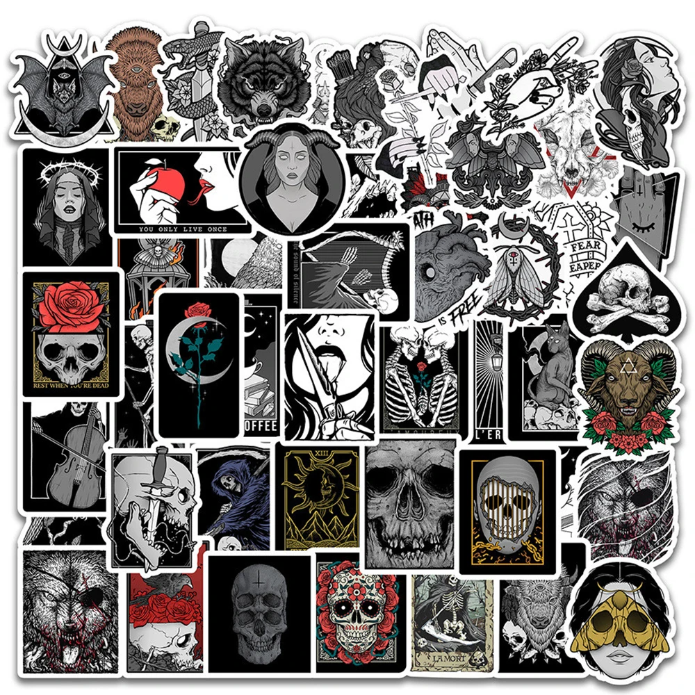 Наклейки с темным черепом для блокноты канцелярские товары, 50 шт., материал для скрапбукинга, готический стикер, винтажные эстетические принадлежности для рукоделия