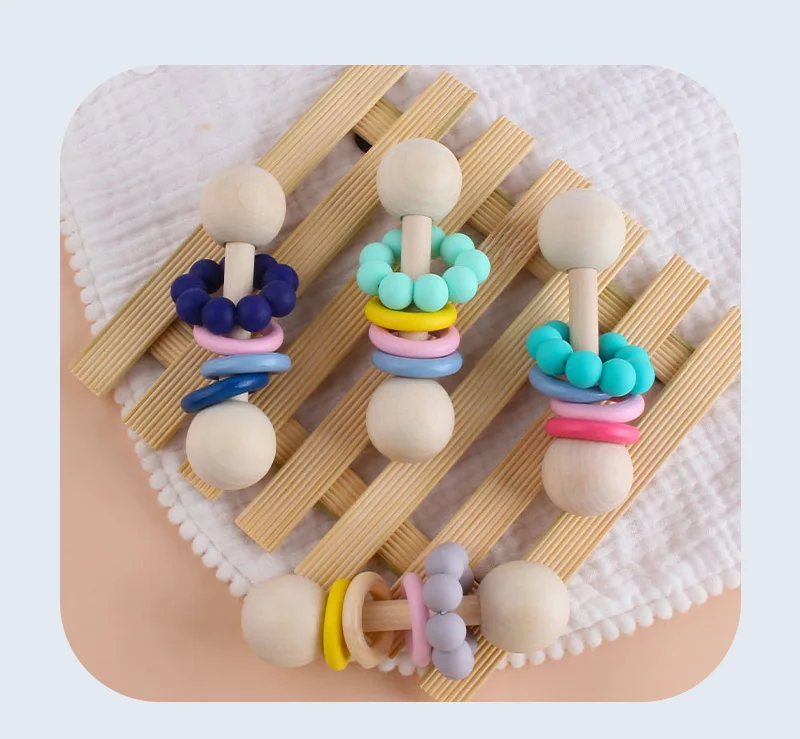 XCQGH детская деревянная погремушка из бука, силиконовые бусины, погремушка, прорезыватель, моляр, игрушка, безопасная музыкальная жевательная игрушка Монтессори