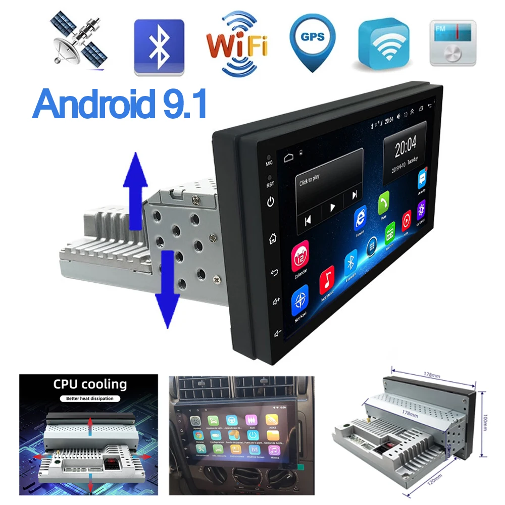 Автомагнитола 7 дюймов, регулируемая, с Android 9,1, GPS, Wi-Fi, BT, Типоразмер 1 Din