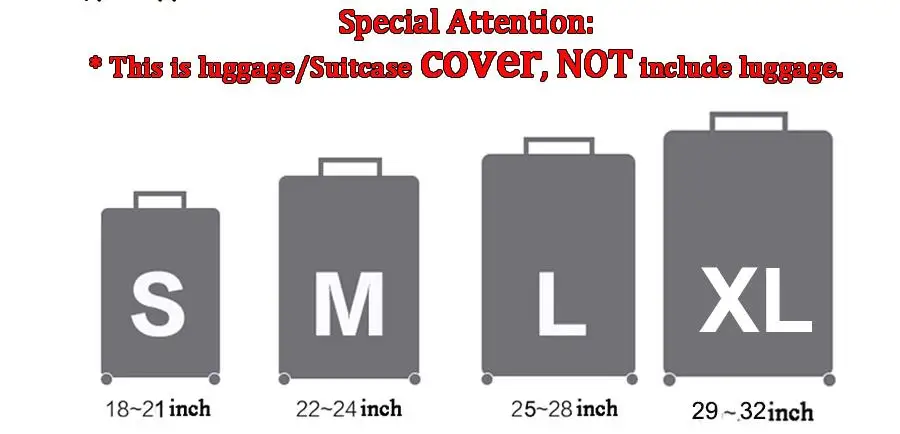 Пожалуйста, обратите внимание, что это чехол для багажа/чемодана, не включая багаж. * Все изображения и цвета могут немного отличаться из-за студийных эффектов освещения. * Настройка. Пиксель вашего изображения на заказ должен быть не менее 800*800. Пожалуйста, обратите внимание, размер 1 дюйм = 2,54 см. Эластичный Чехол для багажа. Размер S: подходит для чемодана 18,21 дюйма. Размер M: подходит для 22,24 дюймов Размер багажа L: подходит для 25,28 дюймов Размер багажа XL: подходит для 29,32 дюймов тип багажа закрывается: молния