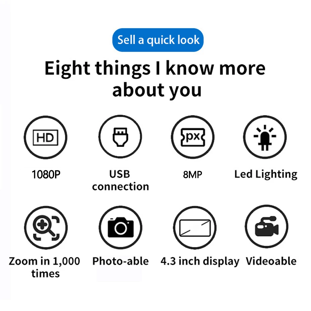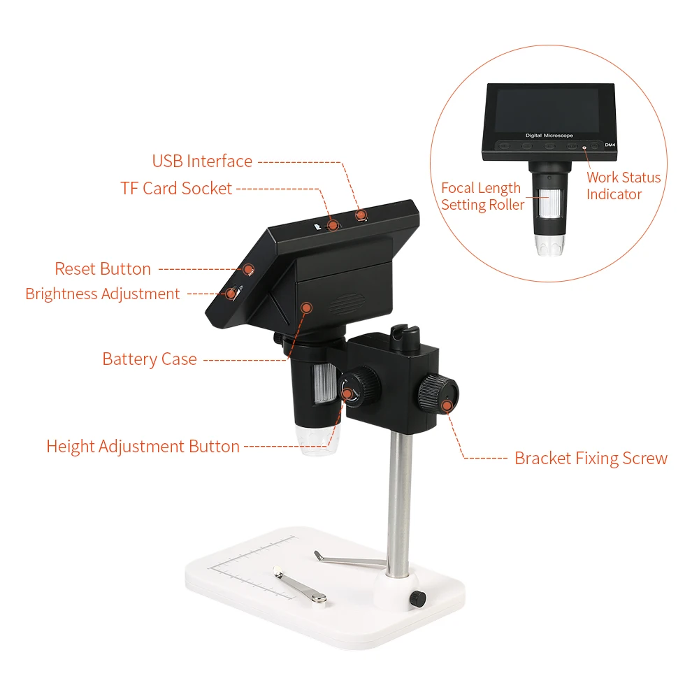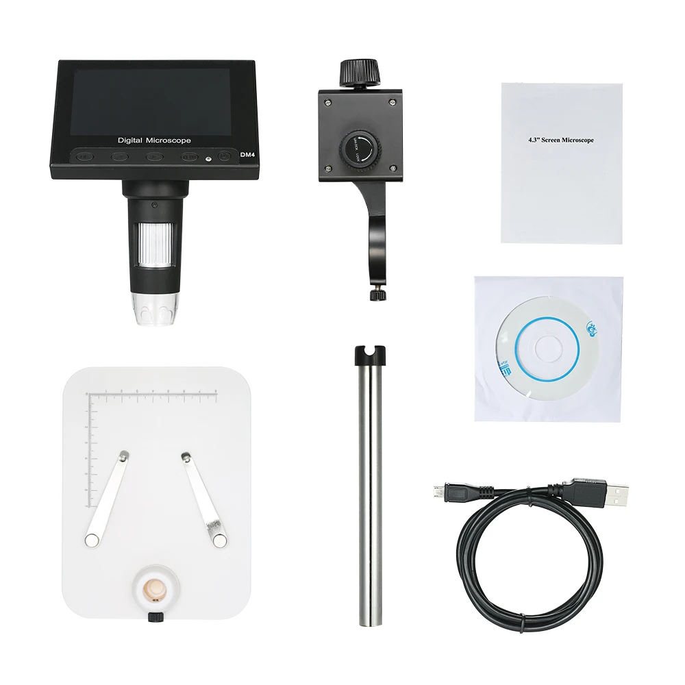 Особенности:Большой 4,3 дюймов Дисплей, что позволяет мгновенно увидеть все ваши замечания в деталях и обеспечивать вас с учетом 720P/разрешение VGA.Увеличение регулируется от 1 до 1000x.Истинный датчик 2.0MP для захвата и сохранения изображений и видео с высоким разрешением ваших образцов.Встроенный 8 белый светодиодный свет и может регулировать освещения.Поддержка вставки tf-карты для съемки фотографий и видео для совместного использования сети и экономии компьютера.Включает функцию автоматического отключения питания и сброса.Питание от USB, легко заряжать и воспроизводить для использования.Профессиональный и регулируемый держатель высоты для работы без рук.Подходит для промышленной инспекции, инспекции электронных аксессуаров, текстильной инспекции, инспекции ювелирных изделий, инспекции печати и т. д.Характеристики:Материал: АБС-пластикКачество изображения: стандартное определениеРазрешение: 720P, VGAДиапазон фокусировки: 0-3 смДисплей: 4.3 дюйма ЖК-дисплейРазрешение изображения: 2 мегапикселяСветодиодный: 8 Белый светодиодныйОбласть освещения: 0 - 30000LUXКонтроль яркости: Ручная регулировкаИсточник питания: USB DC 5VИнтерфейс USB: USB 2,0Увеличение: 1X - 1000X (вручную)Батарея: встроенный аккумулятор 1*18650 Литий Батарея 3,7 V, 2000mAРазмер базовой пластины: 15,8*11,9*21,2 см/6,22*4,69*8,35 дюймовРазмер изделия: прибл. Размер: 12*9 см/4,72 * 3.54inВес изделия: прибл. 434 г/15,31 унцийРазмер посылка: прибл. 21,2*17*8,5 см/8,35*6,69*3,35 дюймовВес посылка: прибл. 674 г/23,77 унцийПосылка:1 * микроскоп1 * Базовая пластина1 * регулируемый держатель1 * расширенный держатель1 * USB кабель1 * CD1 * Руководство пользователя (на английском языке)