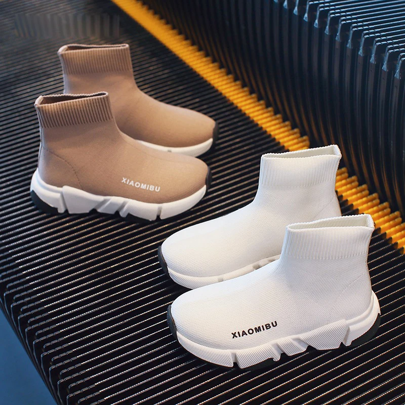 Весенние детские высокие спортивные кроссовки, Детские сетчатые кроссовки-Носки для мальчиков, Детские Брендовые повседневные кроссовки для девочек, кроссовки-носки без шнуровки