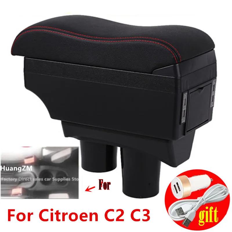 Подлокотник для Citroen C2, C3, для Citroen C2, Двойная зарядка чер...