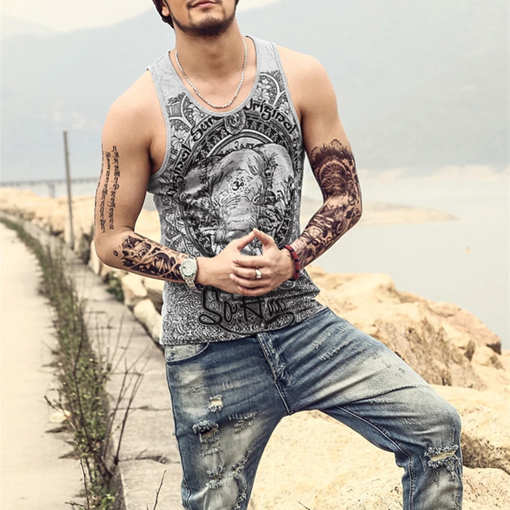 Характеристики:Винтажный принт со слоном выделит Вас.Свободный стиль и удобство ношения.Подходит для фитнеса, тренировок, бега и т. д.Тип: жилетПол: мужскойТип размера: ОбычныйМатериал: нейлон, полиэстер, спандексШея: круглый вырезСтиль: винтажныйТип рукава: без рукавовУход За Одеждой: ручная стиркаСлучаи: фитнес, тренажерный зал, тренировки, тренировки и т. д.Особенности: принт со слоном, свободный, удобный