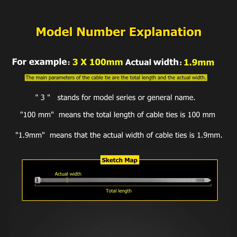 Обратите внимание: Обязательно проконсультируйтесь и ознакомьтесь с вводом продукта перед покупкой, и ширина продукта должна быть тщательно проверена!Основные параметры кабельных стяжек-Общая длина и фактическая ширина К примеру: 3 × 100 мм фактический Ширина: 1,9 мм "3" представляет модель серии кабельных стяжек (незначительно) «100 мм» означает, что общая длина кабельных стяжек составляет 100 мм "1,9" означает, что фактическая ширина кабельных стяжек составляет 1,9 мм Нейлоновый самоблокирующийся ремешок Наша цена составляет 100 штук в пакете Описание количества продукта 1. Спецификация: 3x60 3x80 3x100 3x120 3x150 3x200 2. Цвет: черный/белый 3. Упаковка: 100 шт./упак. Погрешность в способе упаковки вручную и количество морской упаковки допускается + 2% o-2 %! Спасибо вам