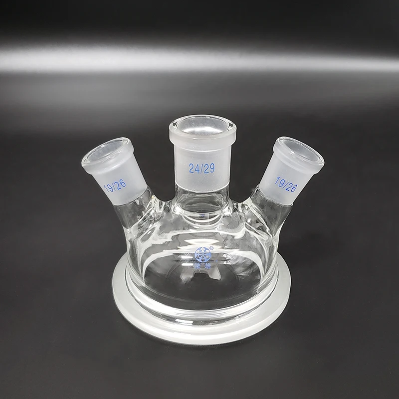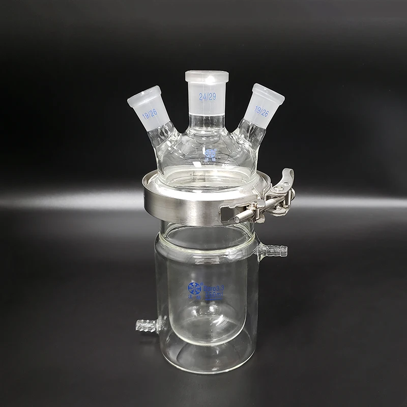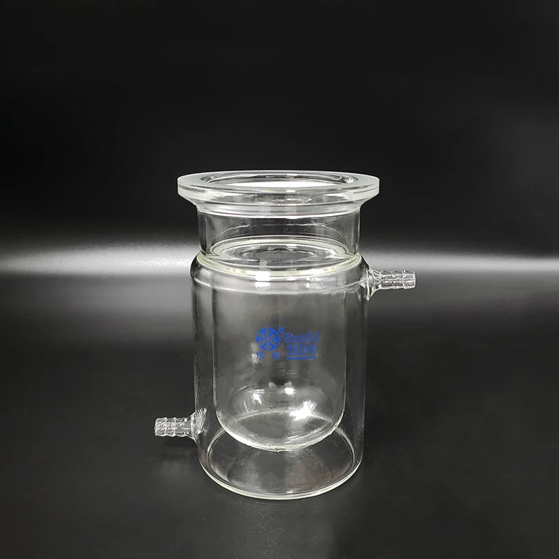 Двухслойная цилиндрическая открытая бутылка реактора 250 мл, внутреннее круглое дно, внешнее плоское дно, фланец 100 мм, Mid 2429,Side 1926