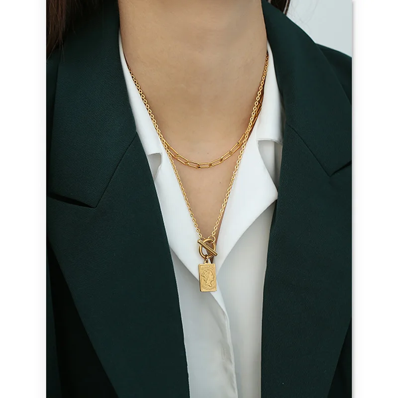 Ожерелье для женщин двухцветное колье с кулоном Ожерелье женское ко...